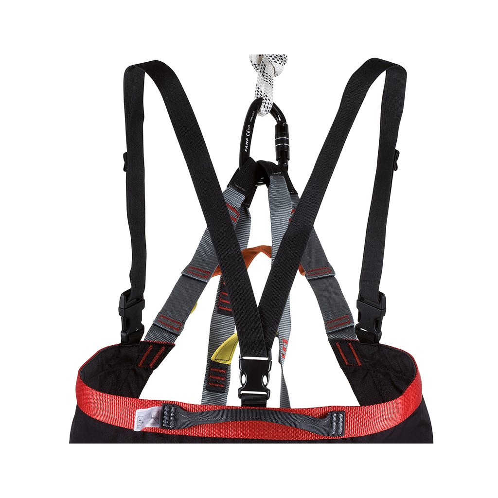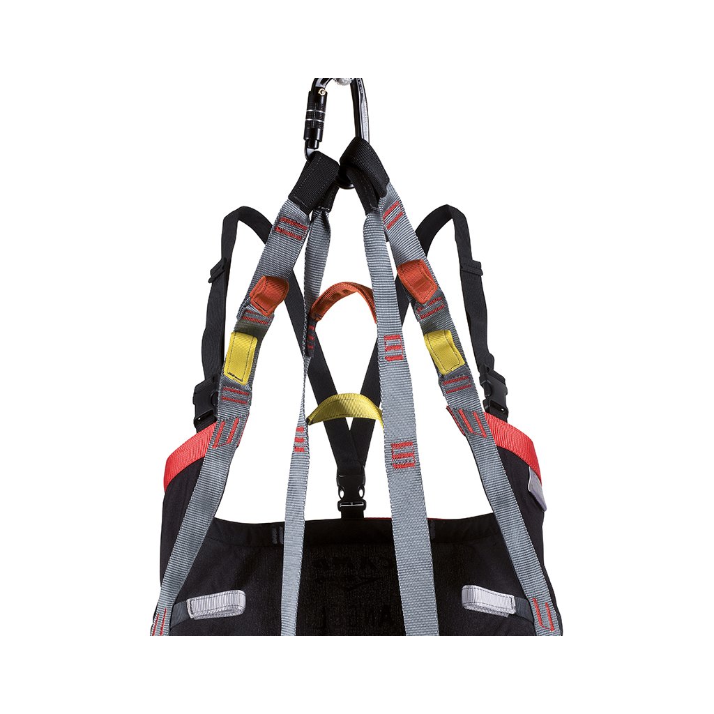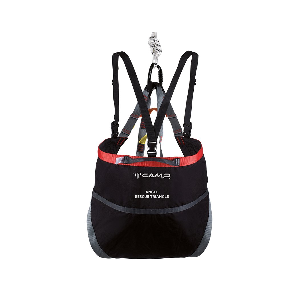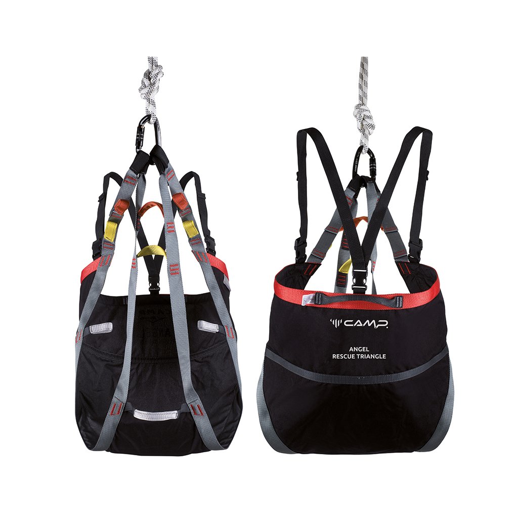 Lehký a kompaktní evakuační trojúhelník používaný záchrannými složkami. Trojúhelník CAMP Angel lze pomocí 4 párů pevnostních oček přizpůsobit pro evakuaci dítěte i statného dospělého muže. Barevně odlišená pevnostní oka mají mezi sebou stejně barevná uchopovací madla, která zjednodušují manipulaci při transportu třeba ze sedačkové lanovky. Jako doplněk má evakuační trojúhelník odepínací ramenní popruhy pro zvýšení komfortu.