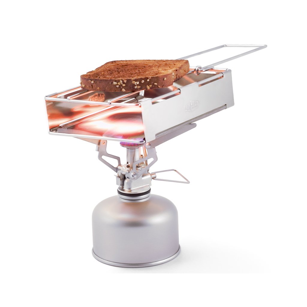 Skládací touster na vařič z nerezové oceli. Ocelová síťka rovnoměrně rozprostře žár pro to nejlepší opečení.