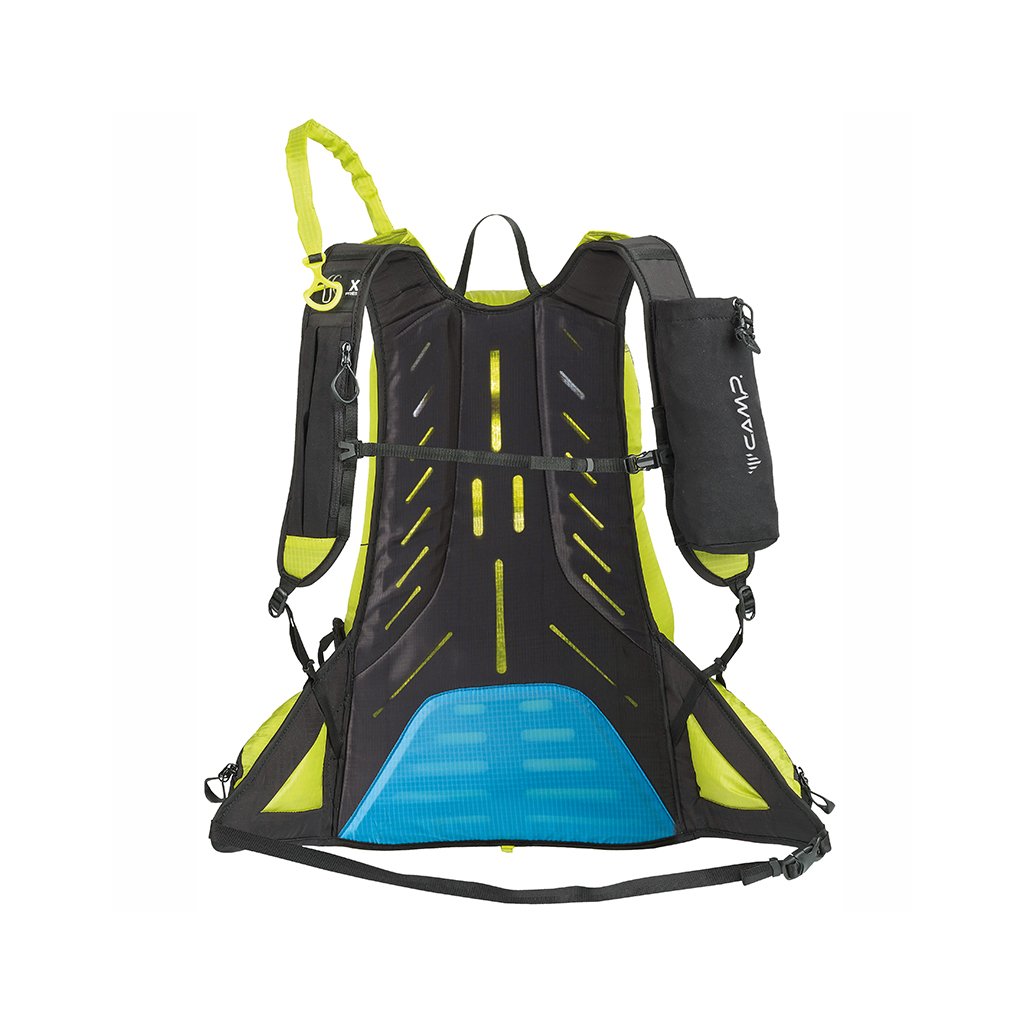 Lehkost a odolnost, toto jsou vlastnosti skialpinistického batohu Camp Rapid. Ale nejen tyto vlastnosti oceňuješ při svých skialpových výpravách za prašanem. Především je to nosný systém X-Press, který umožňuje připevnění a odepnutí lyží bez nutnosti sundání batohu. Hlavní komora je dostatečně velká, ale lze ji pomocí zipu spojit s kapsou na mačky a tím se objem komory zvětší. Pro lavinovou výbavu i záložní oblečení je dostatečný prostor a kapsy vybavení pěkně rozřadí. Zádový prostor a ramenní popruhy jsou polstrovány síťovinou a 4mm Eva pěnou, tím je batoh dostatečně komfortní. Hrudní a bederní pás stabilizují batoh při pohybu na svém místě. Do prostoru pro mačky se pohodlně dostaneš bočním přístupem na suchý zip.