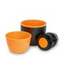 - Termoska obsahuje 2 hrnky a 2 uzávěry – jeden klasický šroubovací a druhý rychlouzavírací pouze na stisk knoflíku.