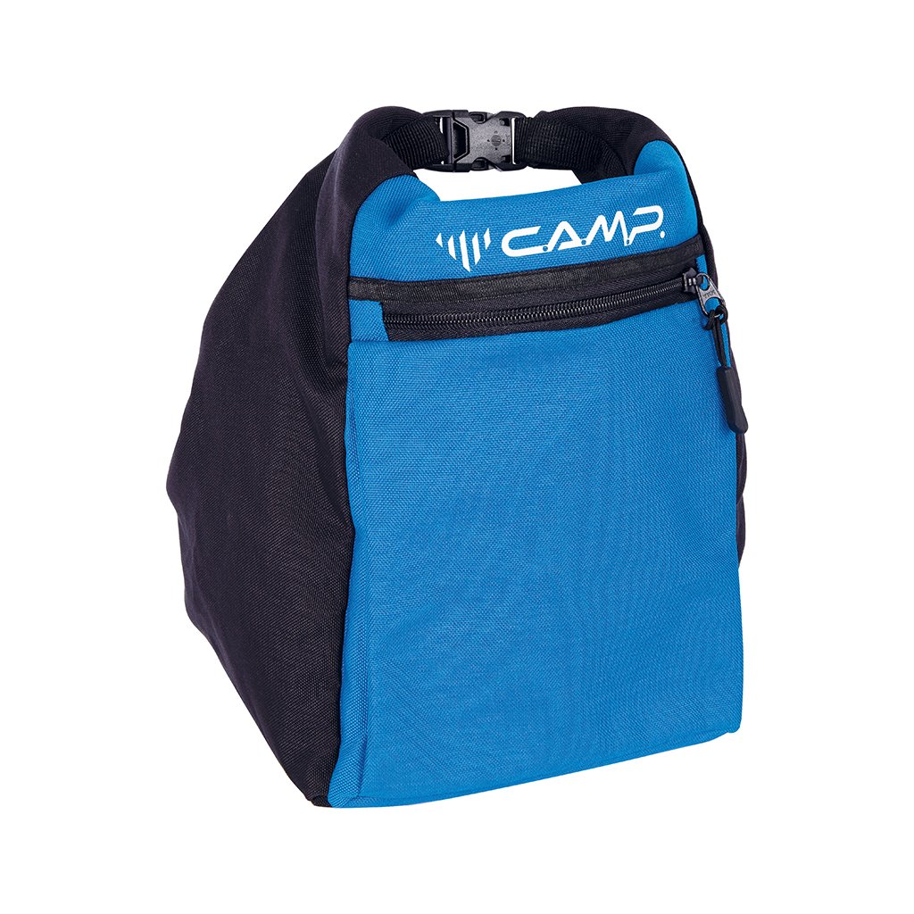 Gamma je 5litrový mega pytel na magnesium, který vám na bouldrech dovolí prášit celý den. Obrovský vstupní otvor nabízí pohodlný prostor pro obě ruce. Použitý vnější materiál je stejný jako u bouldermatky CAMP Domino - výjimečně pevný a odolný. Samotný vstup do hlavní komory používá osvědčené rolovací uzavírání se suchým zipem, pojištěné plastovou sponou. K úplné dokonalosti je pytel CAMP Gamma doplněn 3 poutky na kartáčky a 2 kapsami na zip pro schování drobných cenností jako je mobil nebo peněženka.