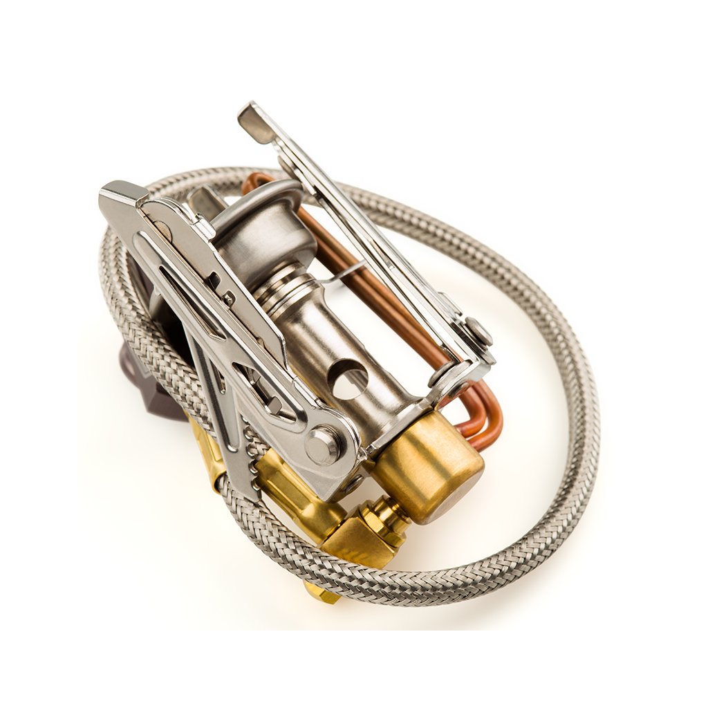 Vysoce efektivní plynový vařič pro externí připojení kartuše pomocí dlouhé kovové hadičky. Vařič je navržen pro maximální skladnost. Hořák dokonale optimalizuje dobu vaření a spotřebu plynu. Skládací nosná zoubkovaná ramena o průměru 138mm poskytují stabilní a bezpečnou plochu na vaření. Kompaktní skládací konstrukce dokonale zapadá do systému nFORM. Vařič se dodává včetně přepravního obalu.