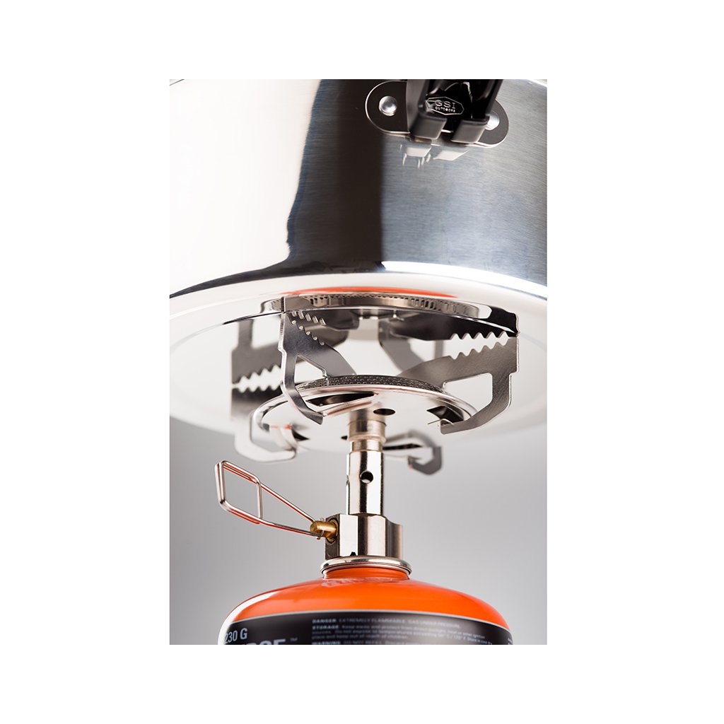 GSI Outdoors Glacier Camp Stove je jednoduchý a vysoce výkonný plynový vařič z odolné nerezové oceli a výkonem 3,8kW (12970BTU/h). Plotna vařiče GSI Glacier Camp Stove je s průměrem 125mm vhodná pro veškeré nádobí GSI z řady pro jednu a 2 osoby (GSI GS Minimalist II, GSI Pinnacle Dualist, GSI Halulite Microdualist,...).