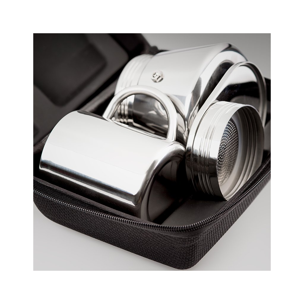 Stainless Mini Espresso 4 cup je set mini presovače a většího espresso šálku. Celý set je z velice kvalitní a odolné nerezové oceli. Jednoduchý a stylový design, jednoduché ovládání a údržba jsou hlavní bonusy k vychutnání si rychle a dokonale připravené čerstvé kávy.