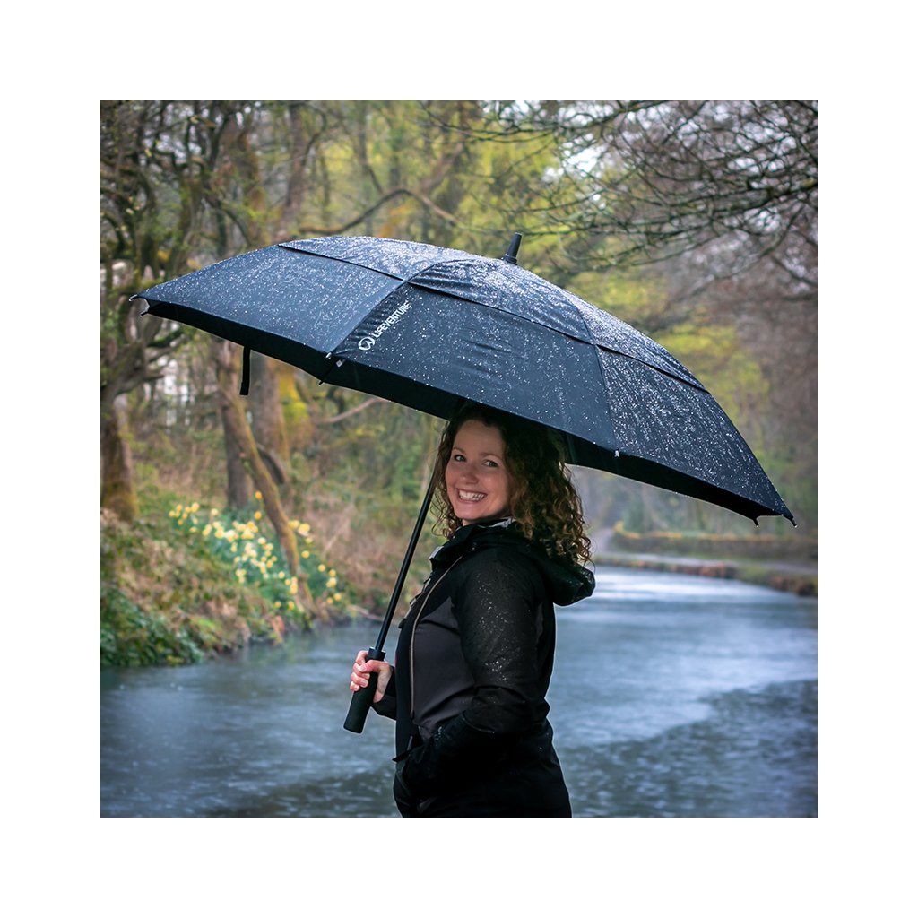 Deštník Trek Umbrela XL je velký deštník s „vystřelovacím“ tlačítkem vhodný pro každou společenskou i volnočasovou příležitost. Hlavní přednosti deštníku je velmi odolná konstrukce ze sklolaminátových vláken, střecha z pevného ripstop materiálu o průměru 135 cm a ergonomicky tvarovaná rukojeť. Střecha je opatřena průduchy, které zabraňují poničení deštníku při silnějším větru.