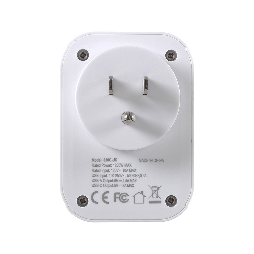 Cestovní adaptér s USB rozhraním, který umožňuje připojení zařízení do zásuvek používaných v USA. Kromě samotné redukce adaptér nabízí připojení pro 2x USB + 1x USB Typ C (5V, 3A max). Adaptér nefunguje jako měnič napětí.