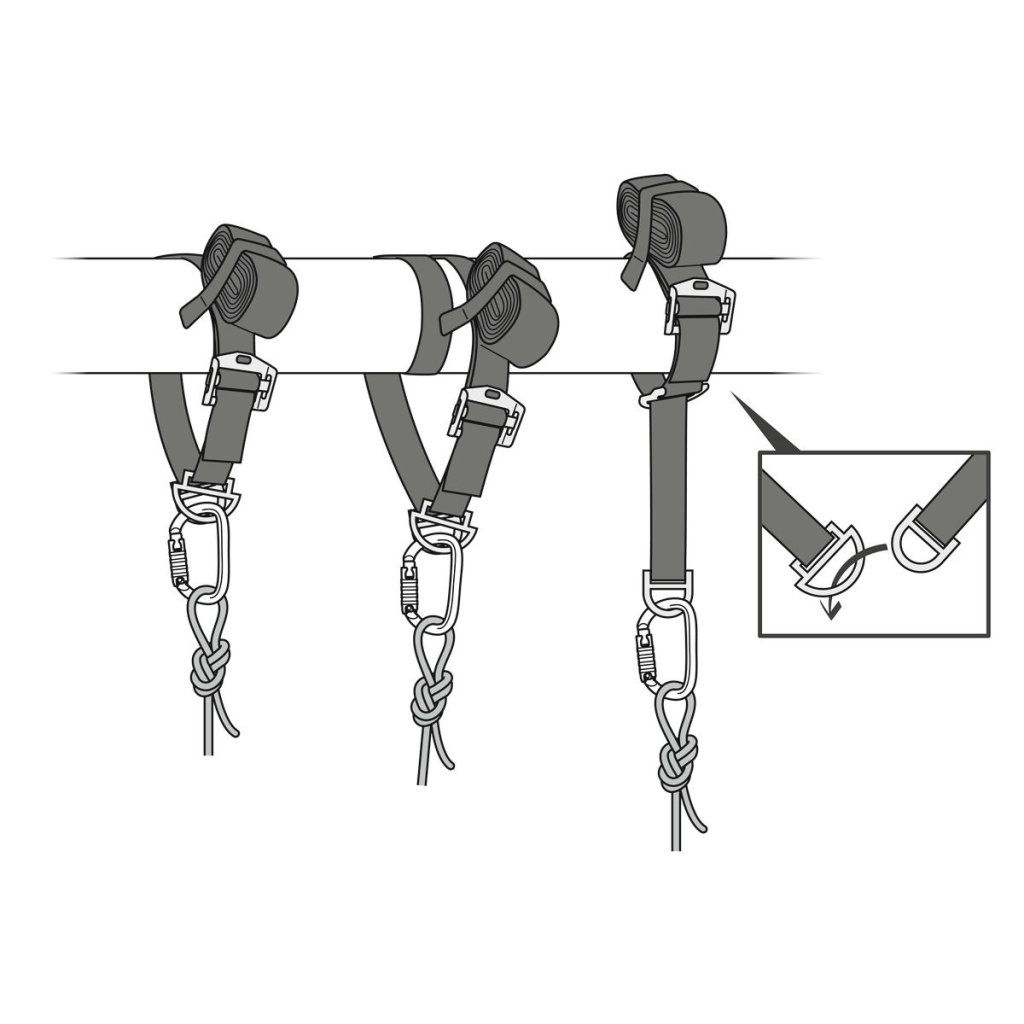 CONNEXION VARIO je odolný, nastavitelný kotevící popruh vybavený dvěma kovanými ocelovými připojovacími oky. Nabízí několik možností připojení přímo do kotvícího bodu, nebo omotáním kolem konstrukce. Délka popruhu je nastavitelná díky nastavovací sponě. Systém udržuje zbývající popruh uložený. Je k dispozici ve dvou verzích (30 až 200 cm a 200 až 400 cm).