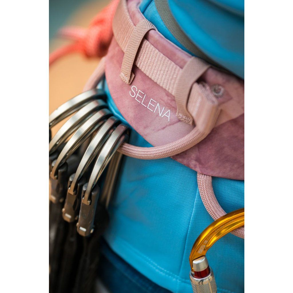 SELENA je pohodlný sedací úvazek, který se hodí jak na umělé ezecké stěny, tak do skal. Elastické nožní popruhy se přizpůsobí oblečení a pohybům, pás je pružný a zúžený na přední straně, aby poskytoval velkou velnost pohybu. Čtyři poutka na materiál poskytují dostatek prostoru pro uložení veškerého vybavení, které potřebujete.
