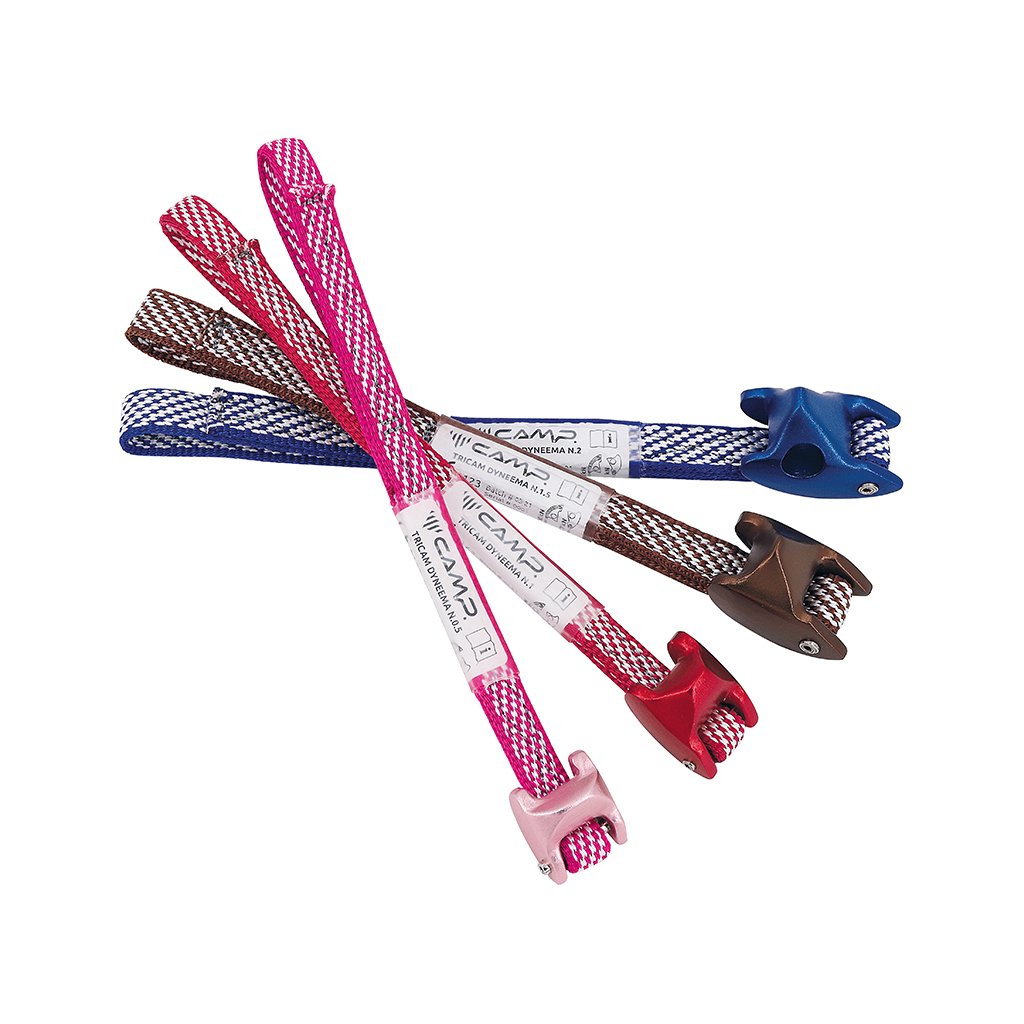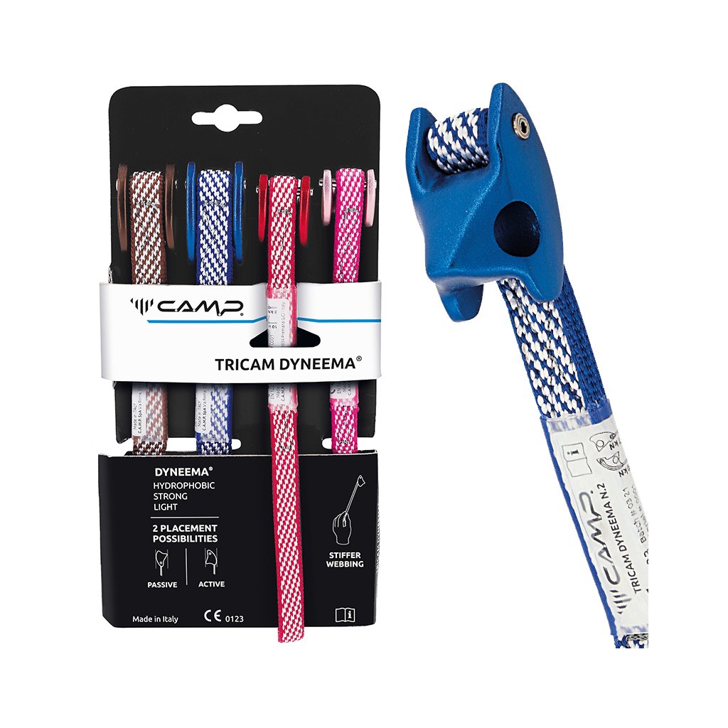 Sada 4 ks vklíněnců Tricam s Dyneema® smyčkou. Dyneema® má oproti nylonu vyšší pevnost a její hydrofobní vlastnosti zabraňují nasáknutí vody a námrazy.