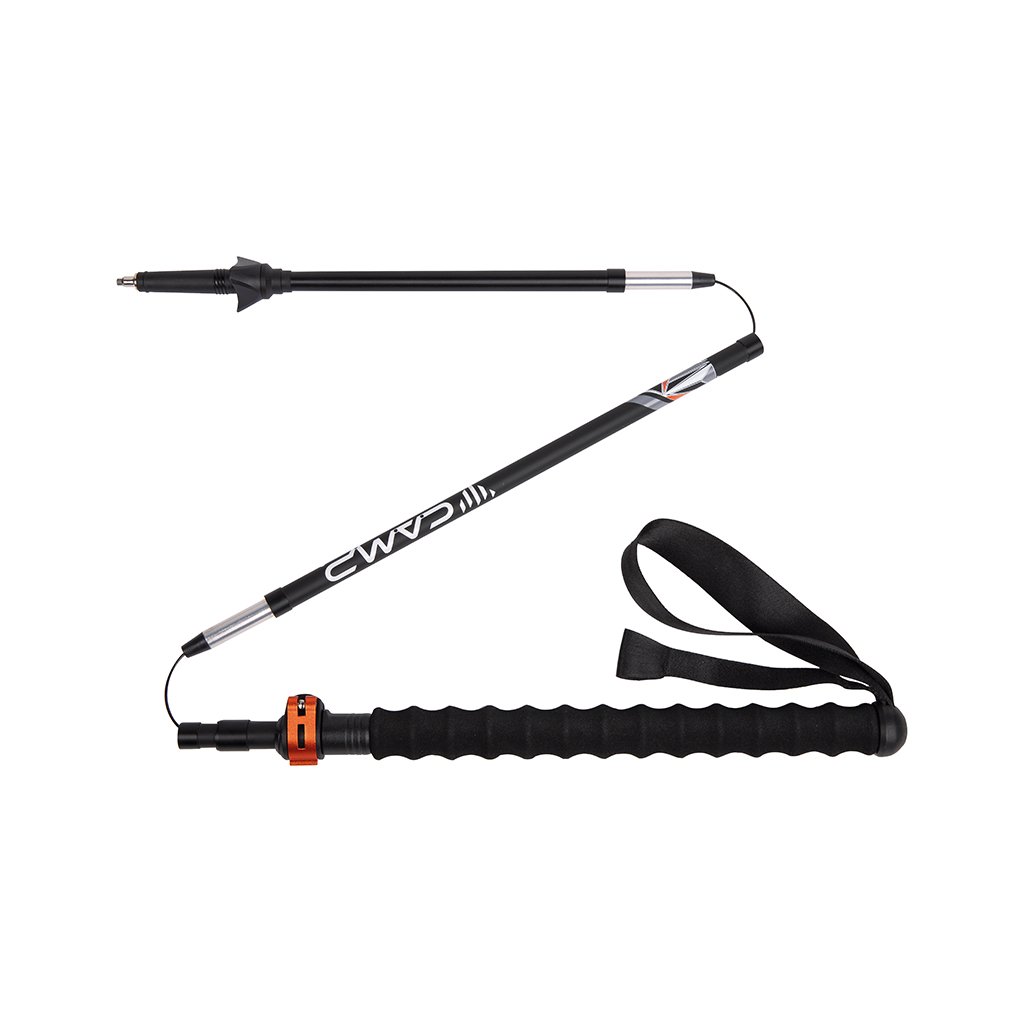 The Super-light trail poles C.A.M.P. Sky Carbon Plus utilize 3 segments made of carbon fiber and 2 segments of 7075 aluminum alloy, combining minimal weight with maximum strength and shock absorption capabilities. This proven material combination places Sky Carbon Plus among the folding poles especially suitable for hiking and trail running. In total, 5 segments are connected by an internal 1.5 mm steel cable with a polyamide sheath, allowing you to easily adjust the pole's stiffness. For more versatile use, the top foam grips are extended, which is particularly beneficial in rough terrain. The upper segment features a simple locking system, Alu Fast Lock, for easy adjustment of the pole length from 115 to 135 cm. A major advantage of the Sky Carbon Plus poles is their minimal folded length of 36 cm, making them easy to store in the side mesh pocket of a trail backpack or vest. The C.A.M.P. Sky Carbon Plus poles come with 3 basket sizes depending on the activity, a rubber protector for the highly durable carbide tip, and a transport bag.