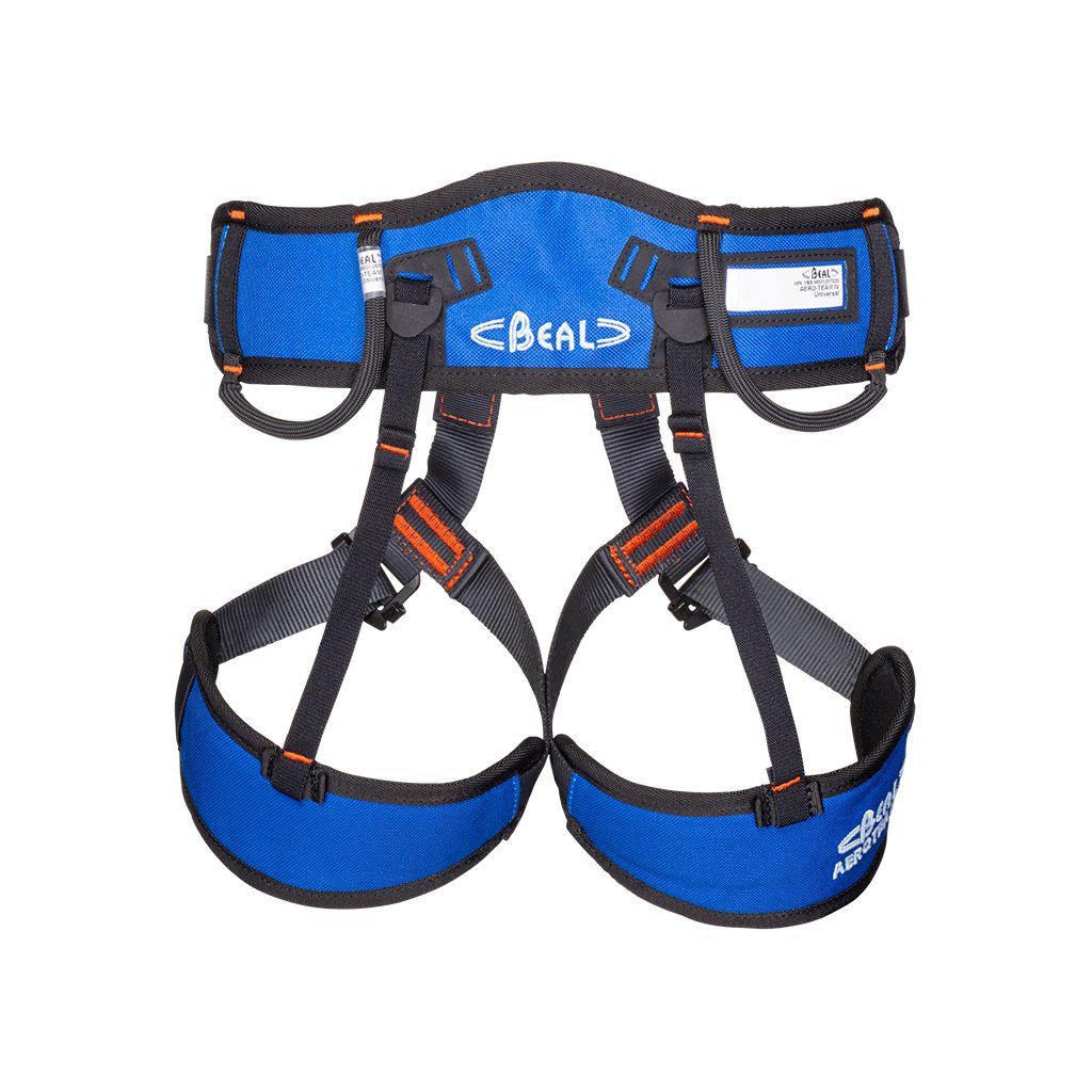 Aero Team IV is a simple harness with an upper mesh, specially designed for outdoor centers and youth. It is equipped with three self-locking buckles, 2 material loops and offers a huge range of waist and pant adjustments for small and large users. It is possible to place a colored Beal Veto target on the back of the seat, which makes it easier for the instructor to recognize groups of climbers.