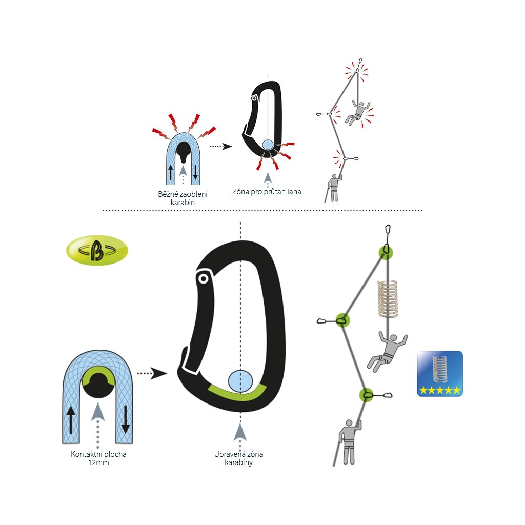 Be One is a compact full carabiner with Keylock modification. Its spine diameter of 12 mm ensures a perfect slip of the rope, which at the same time saves the rope and the carabiner itself.