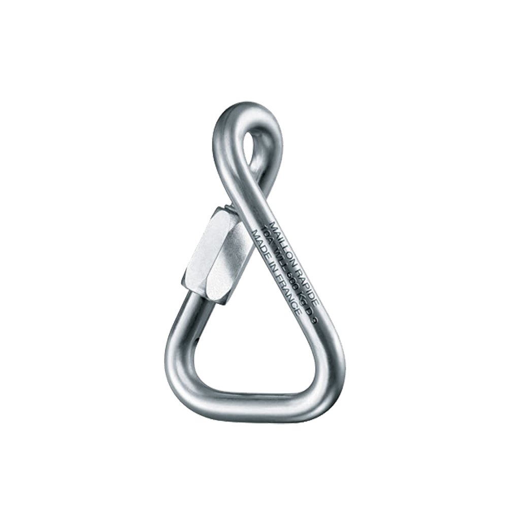 Twisted 9mm steel mailon suitable, for example, for connecting a work seat harness to the chest, or wherever a 90° twist is advantageous for connection.