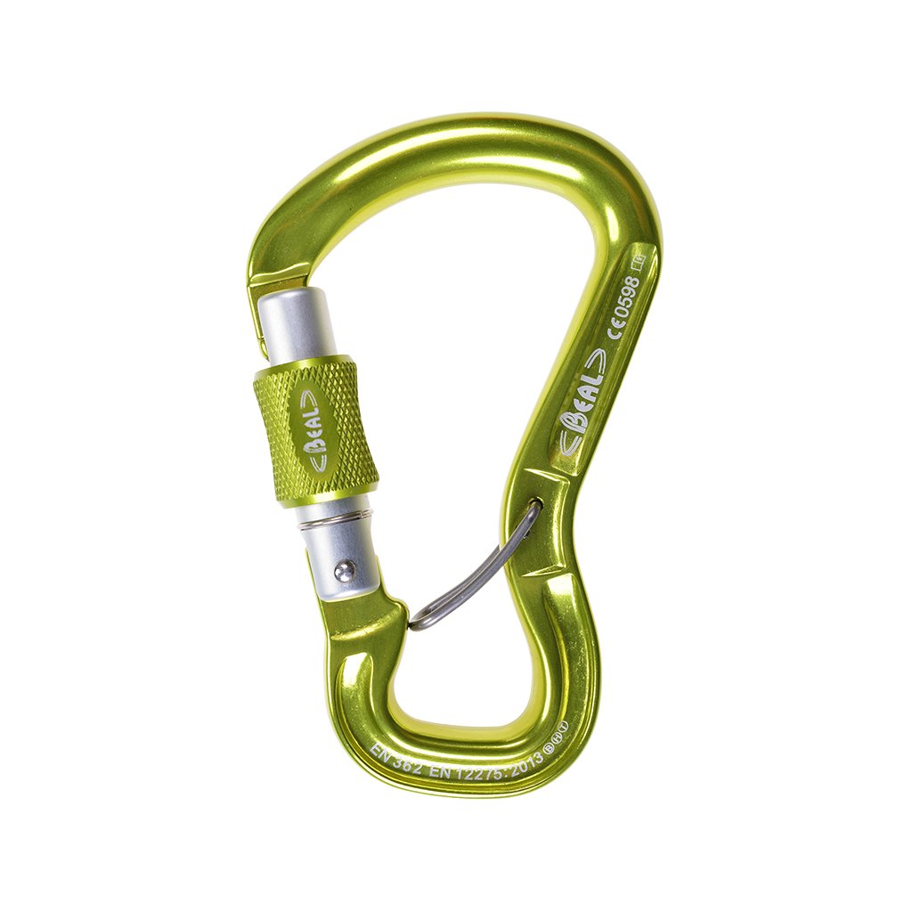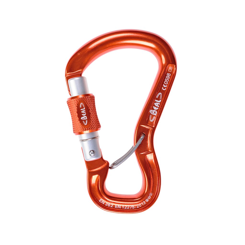 Versatile duralumin HSM carabiner with a screw lock lock, which is also adapted for tightening or unlocking with a mailon. The internal second lock for the rope prevents the carabiner from turning undesired and unintended loading other than in the longitudinal direction. The carabiner meets the 12275 type B, type H and type T certification.