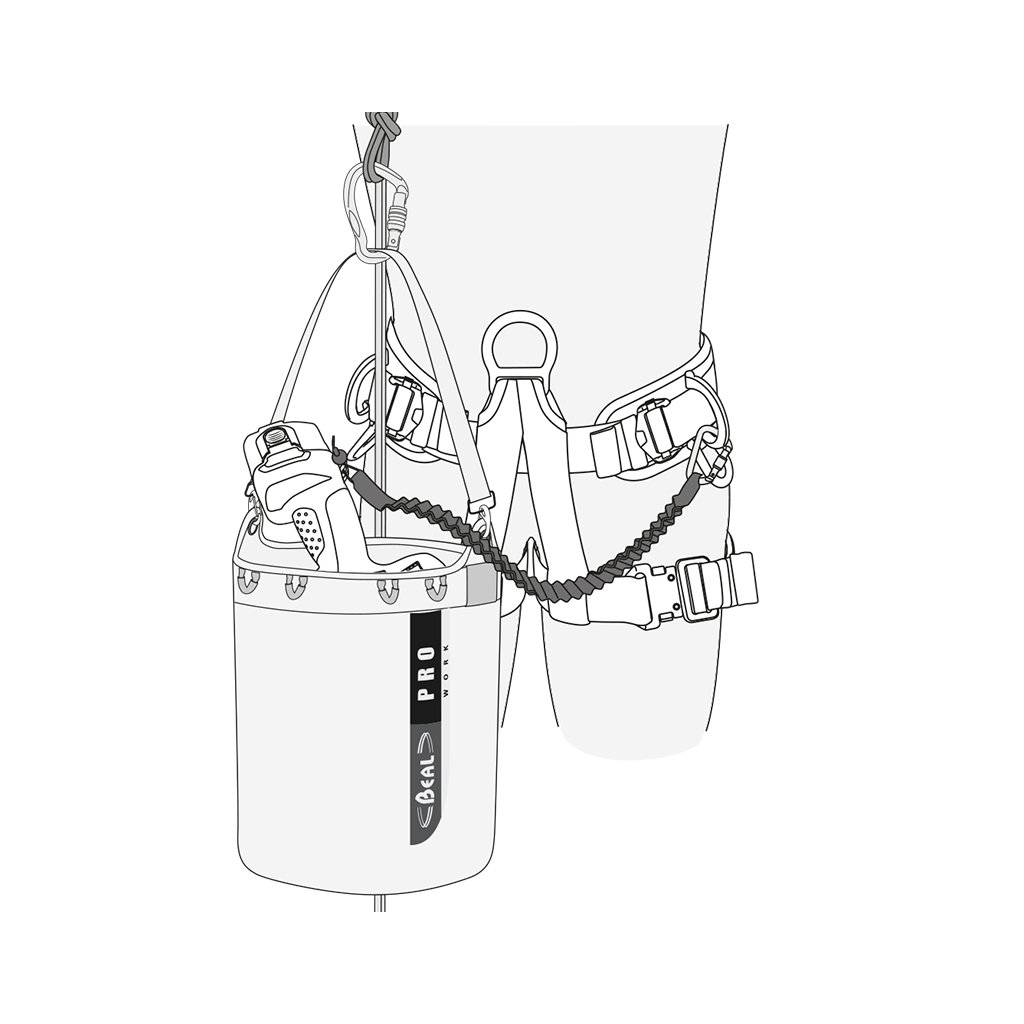 BEAL SUPER LEASH is an auxiliary leash for attaching tools or a chainsaw to the work harness. A small carabiner is included, with which you can easily attach the bow to your harness. The maximum load weight is 10kg.