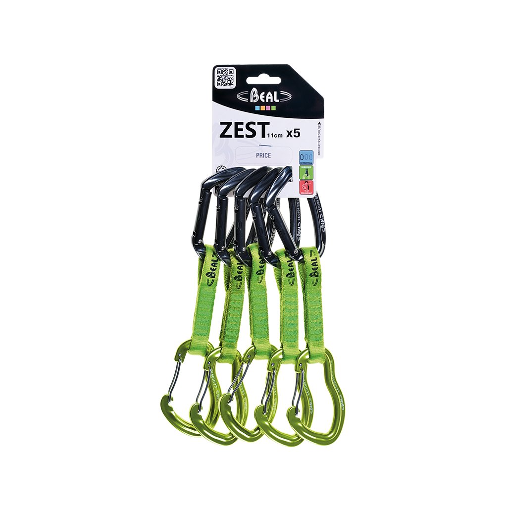 Set of 5 mixed express BEAL Zest 11cm, which are great for big wall and sport climbing. Carabiners have an ergonomic shape and are easy to operate. The full BEAL Star Gate carabiner is equipped with a Keylock system for easier and safer clicking. The wire carabiner is equipped with an ergonomic treatment of the wire, which guarantees easy snapping of the rope.