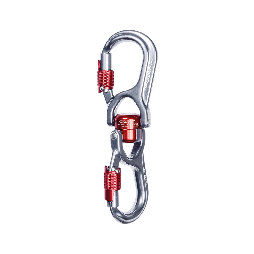 Enigma 3Lock Double is a unique working swivel with 2 carabiners with a 3 position lock lock. The ready-made rope connection system needs no additional connector and the entire hitch and belay system is not unnecessarily lengthened. For maximum efficiency, ball bearings are used in the swivel hitch and require no additional maintenance. The entire Enigma 3Lock Double system, with its unique pivot pin combined with positionable carabiners, allows for the widest range of applications in rope access, arboriculture and professional rescue scenarios.