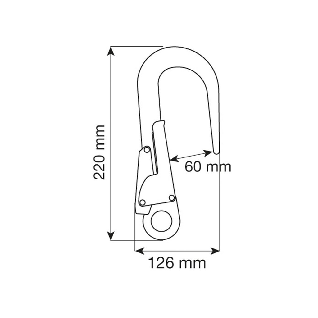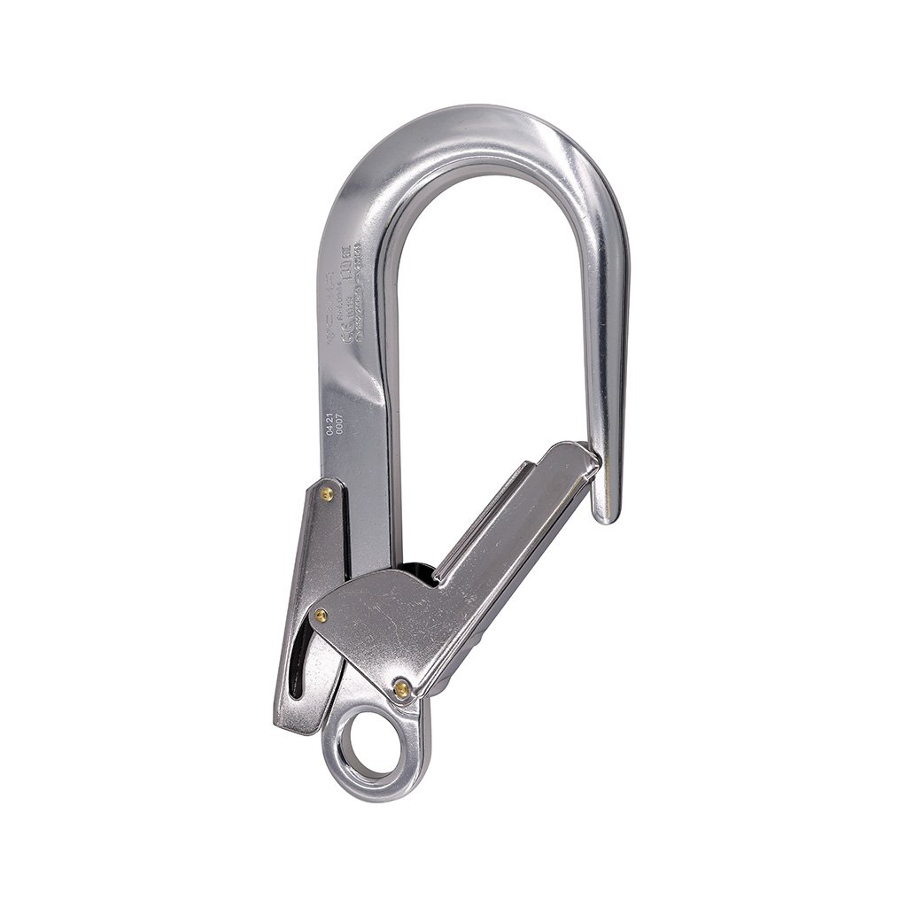 The belay hook with palm safety is used for belaying on metal structures. Large opening for connection to beams and pipes up to 60 mm. The locking system with double palm safety ensures a high level of security and easy handling.