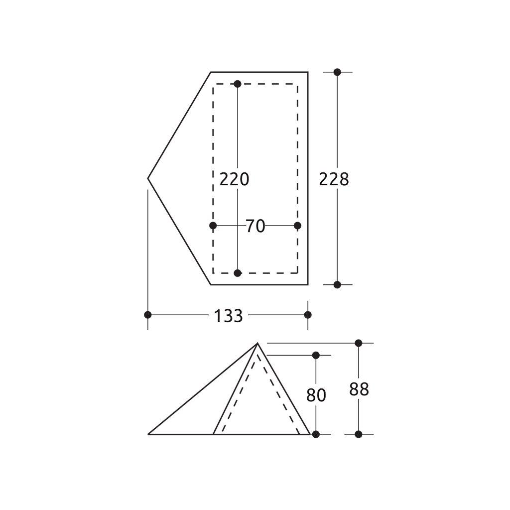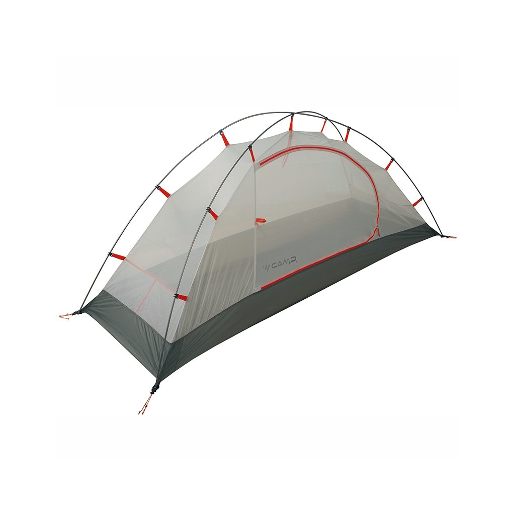 The Minima 1 EVO tent is a super light double-layer tent for 1 person, ideal for hiking and mountaineering. Among the main advantages is the ultra-low weight - the set, including the poles, weighs 1.5 kg. The inner part ("bedroom") is made of extra breathable mesh. It can be easily attached to the rod structure using clips. The bottom of the tent is made of high-strength waterproof material 70D Nylon 190T/N. The entire outer shell of the CAMP Minima 1 Evo tent is made of light but strong and water-resistant Nylon Ripstop 30D with taped seams. You can easily attach the jacket to the rod structure using Velcro fasteners. In the equipment of the tent, you will certainly appreciate 2 ceiling vents (closeable), anti-direction zips, internal storage pockets or a large vestibule. The tent includes 15cm long "V" shaped aluminum pegs for the best compromise between weight and strength.