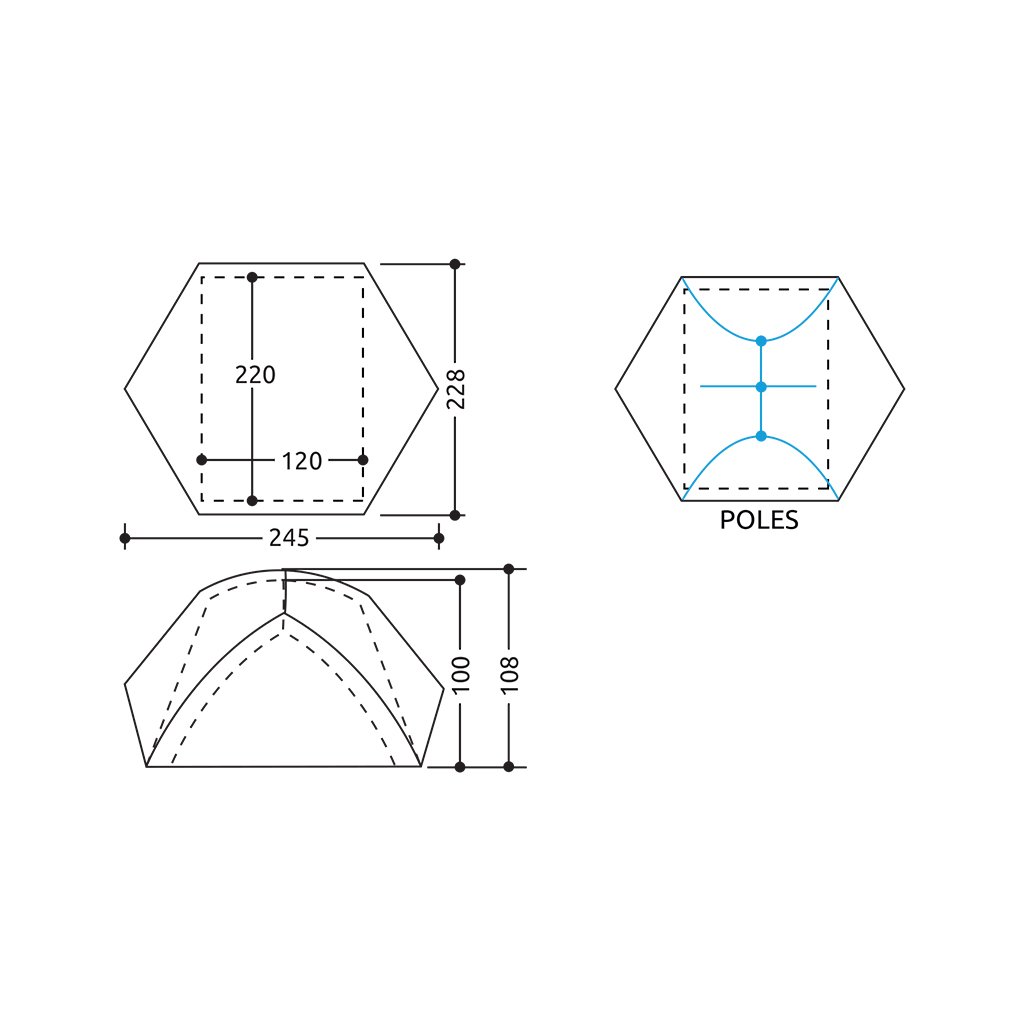 | Tent type | Weight (g) | Package size (cm) | External dimension of the tent (cm) (L x W x H) | Inside dimension of the tent (cm) (L x W x H) | < td>Number of peopleWater column of the outer layer (mm) | Water column of the floor (mm) | Number of entrances | |