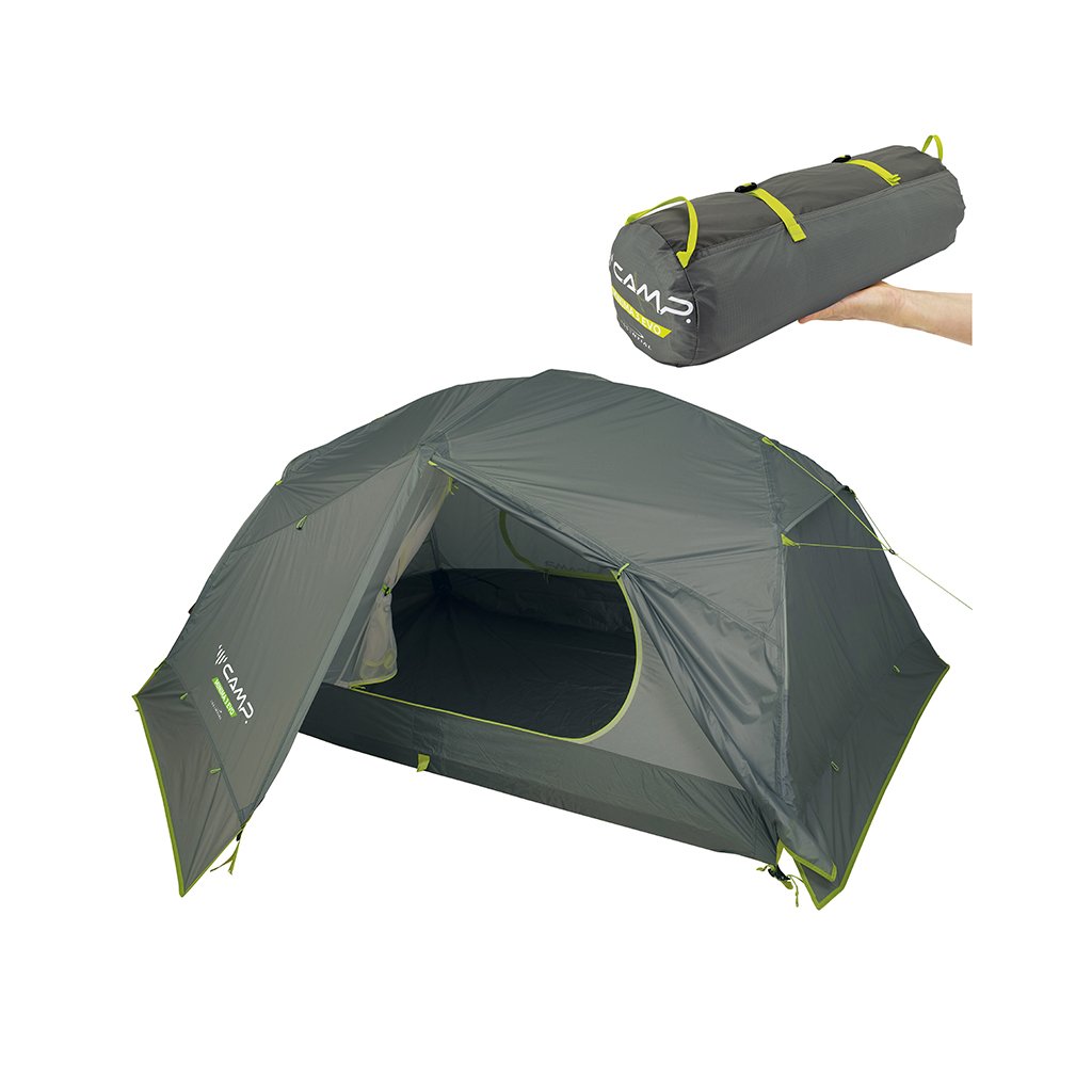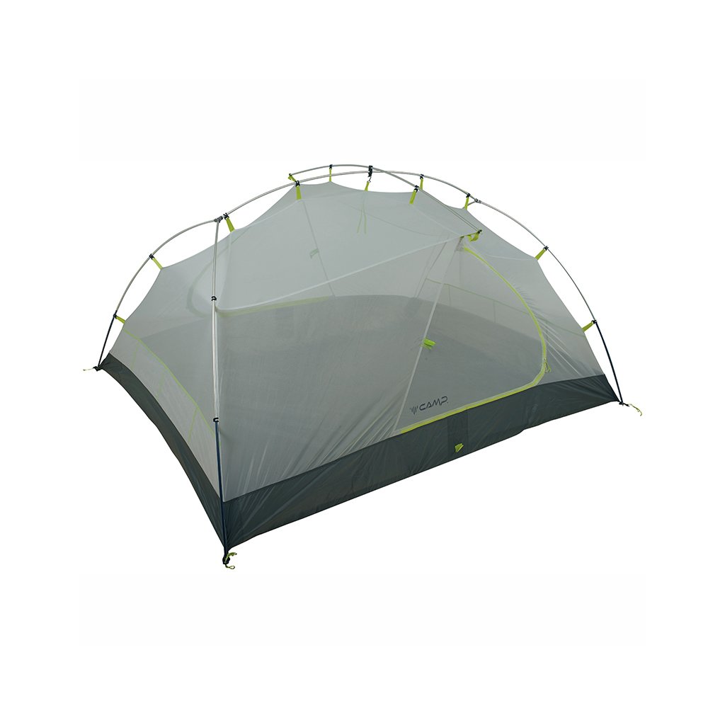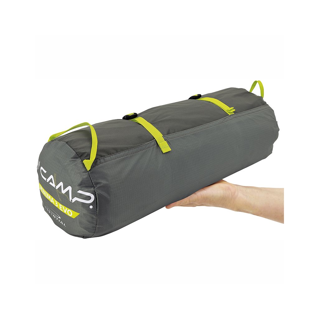 The Minima 3 EVO tent is a super light double-layer tent for 3 people, ideal for hiking and mountaineering. The leading advantages include the ultra-low weight - the set, including the poles, weighs 2.53 kg. The inner part ("bedroom") with 2 entrances is made of extra breathable mesh. It can be easily attached to the rod structure using clips. The bottom of the tent is made of high-strength waterproof material 70D Nylon 190T/N. The entire outer shell of the CAMP Minima 3 Evo tent is made of light but strong and water-resistant Nylon Ripstop 30D with taped seams. You can easily attach the jacket to the rod structure using Velcro fasteners. In the equipment of the tent, you will certainly appreciate 2 vestibules, 2 ceiling vents (with the option of closing), anti-directional zippers, internal storage pockets or a large vestibule. The tent includes 15cm long "V" shaped aluminum pegs for the best compromise between weight and strength.