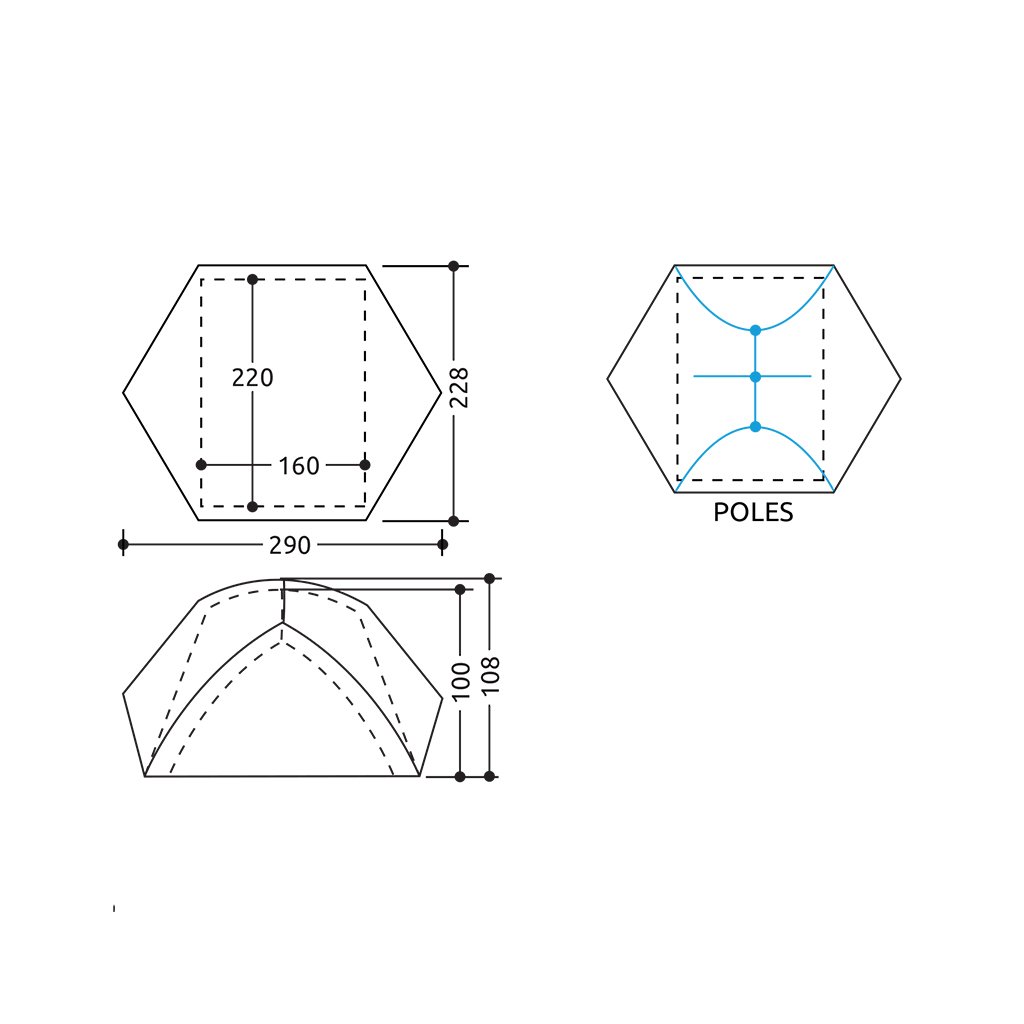| Tent type | Weight (g) | Package size (cm) | External dimensions of the tent (cm)(L x W x H) | Interior dimensions of the tent (cm)(L x W x H) | Number of people | Water outer layer column (mm) | Floor water column (mm) | Number of entrances | |