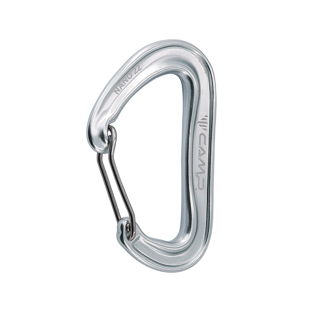 One of the lightest express bikes on the market, designed for sport and high-altitude climbing. The Nano 22 Express is a combination of 2 CAMP Nano 22 wire carabiners and an 11mm Dyneema® loop 18cm long, which is strong, light and safe also thanks to the Karstop Evo accessory, which prevents the carabiner from spinning.