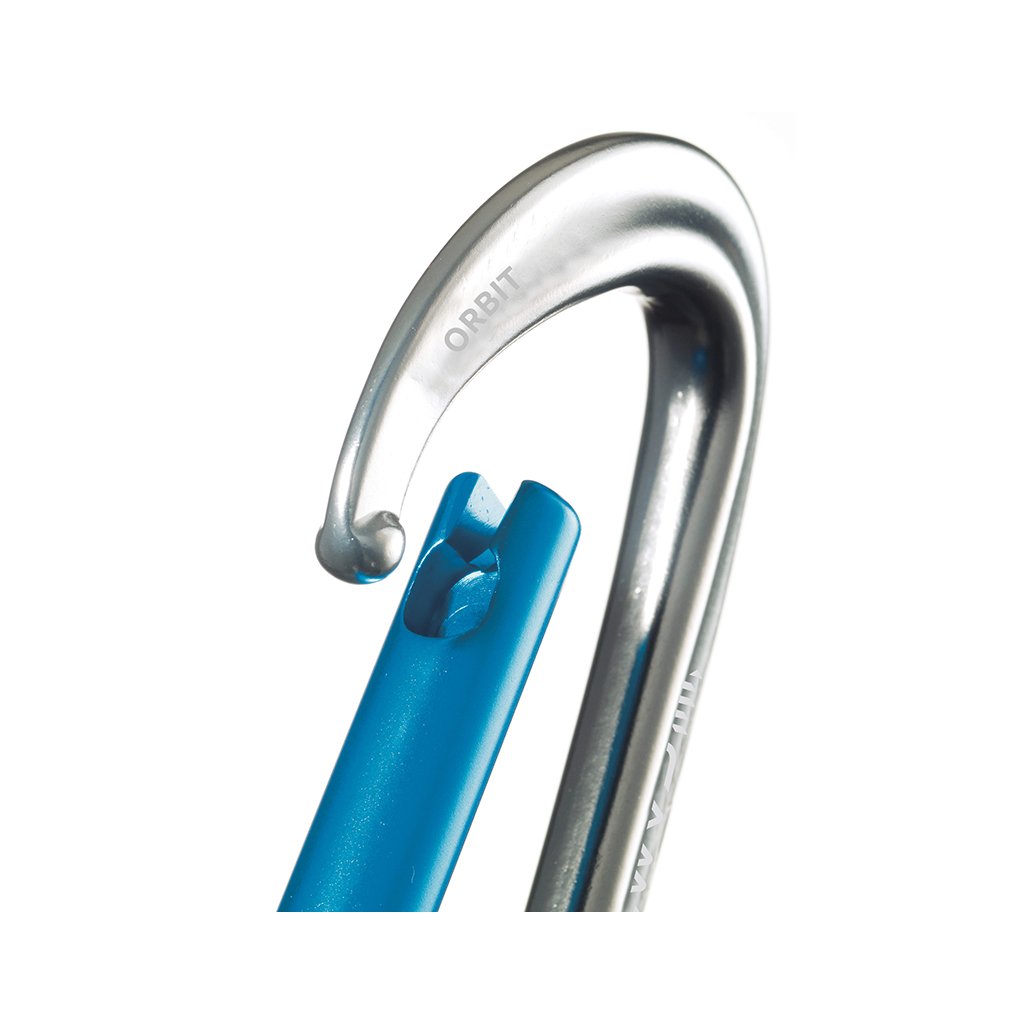 The Orbit Straight Gate is a full size "D" straight lock carabiner. The newly modified profile of the carabiner, compared to the previous versions of the CAMP ORBIT carabiner, has increased its strength without affecting its low weight. The new narrower nose profile is equipped with a proprietary SphereLock that minimizes clearance between the lock and the nose, increasing safety and other parameters. The CAMP Orbit Straight Gate carabiner is ideal as a universal carabiner for all types of climbing. However, it is mostly used by alpinists and rock climbers.