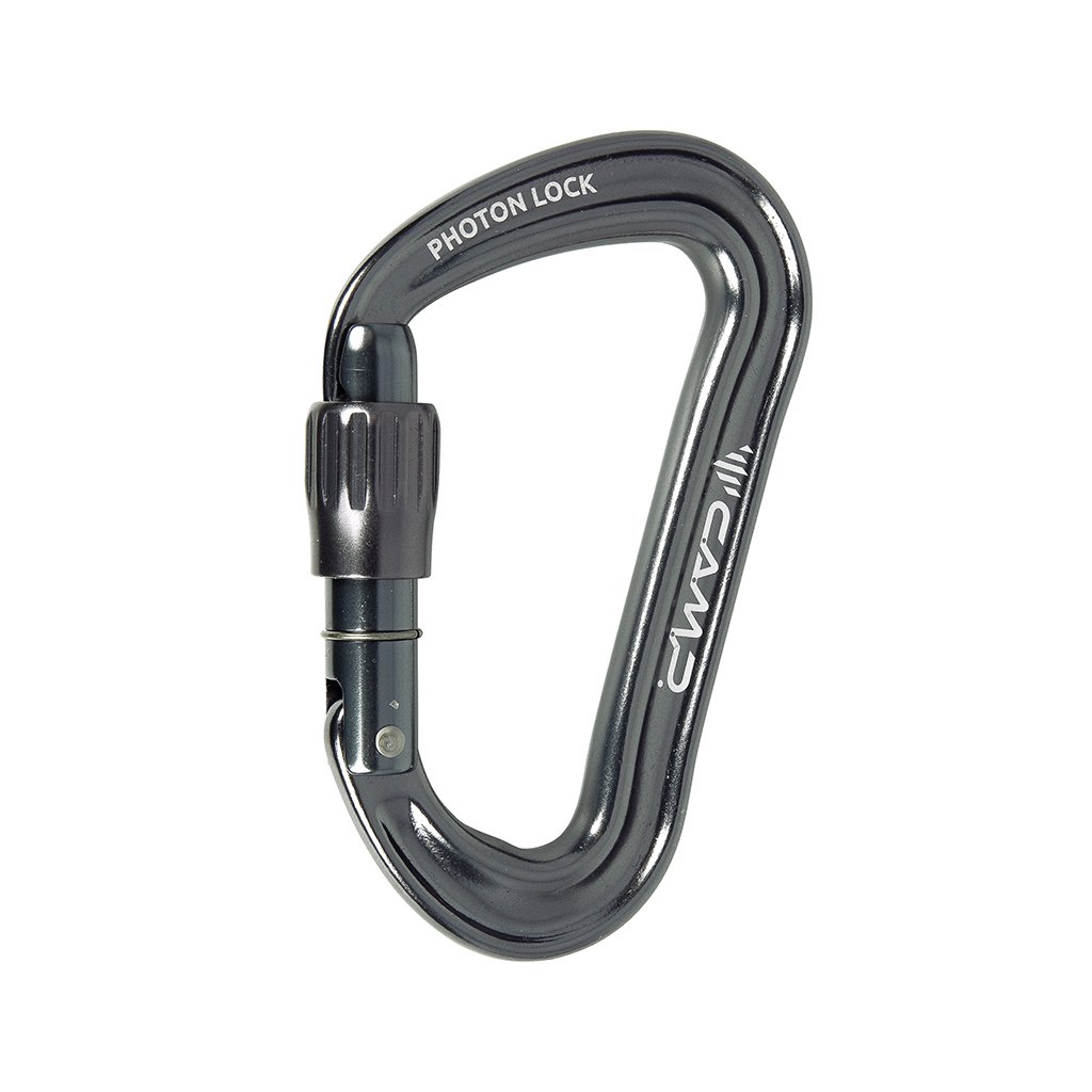 Photon Lock is the lightest "full size" carabiner with a screw lock safety from CAMP. It is designed for versatile use and for climbers of all levels. The I-Beam construction of the finish brings an excellent ratio between strength and weight, while still maintaining excellent passability of the rope through the carabiner. The Photon Lock carabiner has a patented SphereLock nose and lock design, which increases strength under load by precision grinding. The newly modified screw-in safety of the lock guarantees optimal thread slide for the easiest one-handed manipulation.