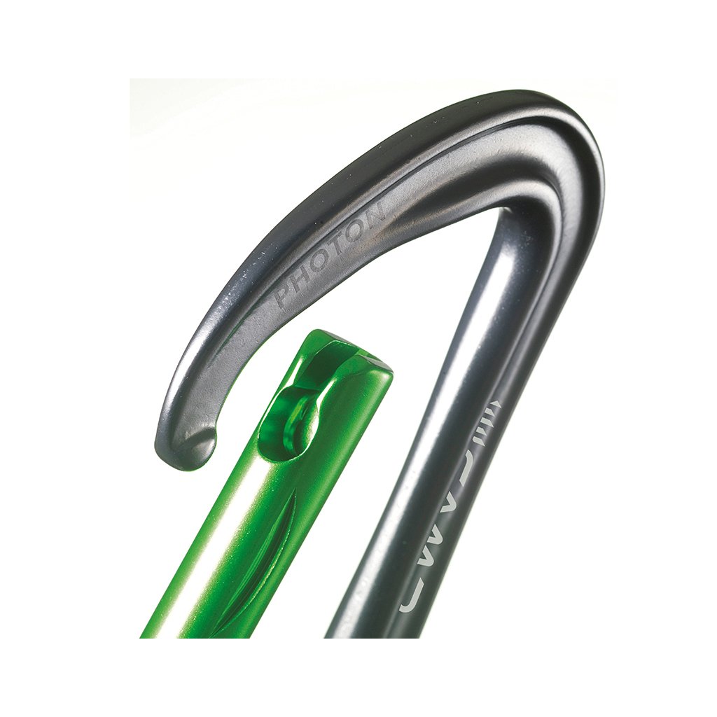 The Photon Straight Gate is still the lightest full size full keylock carabiner in the world. The new narrower nose profile is equipped with a patented SphereLock closure that minimizes the clearance between the lock and the nose, which increases safety and other parameters. The optimized design increases the carabiner's strength without affecting its weight.