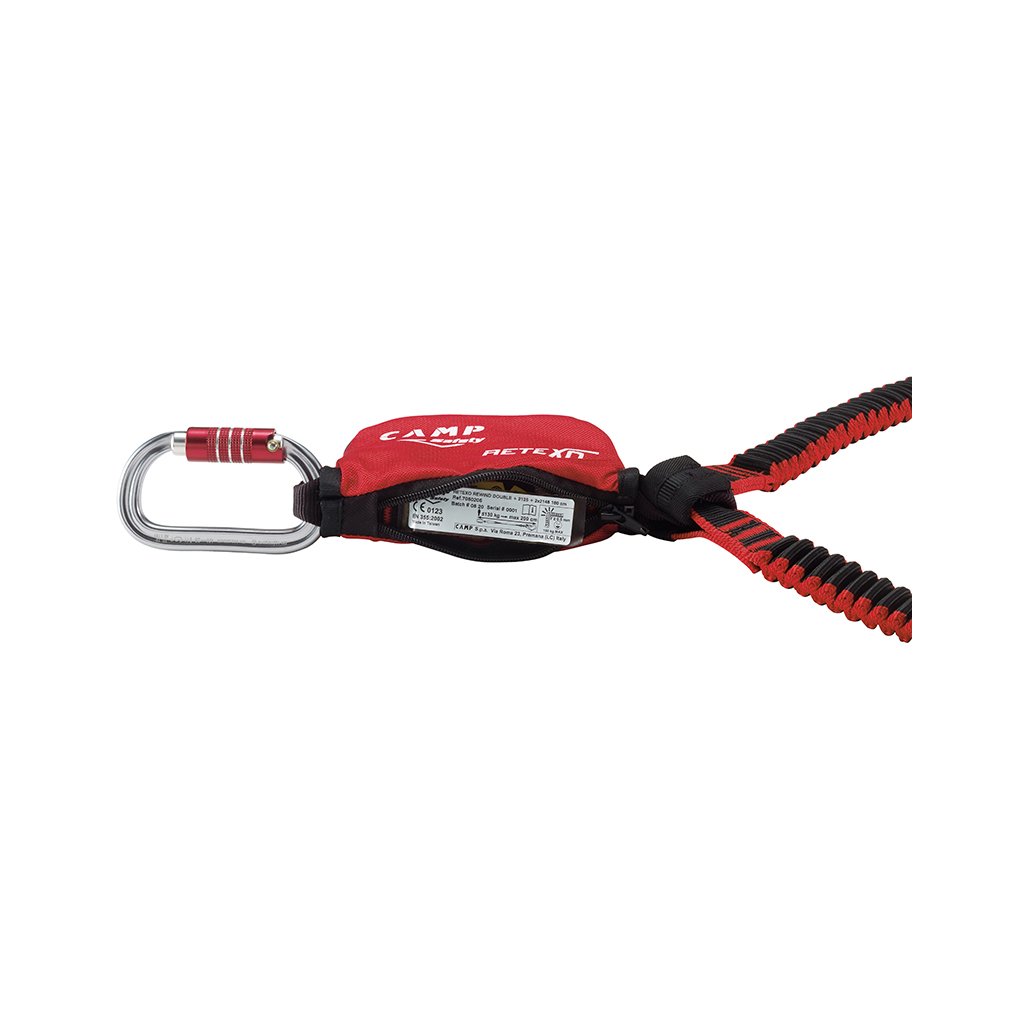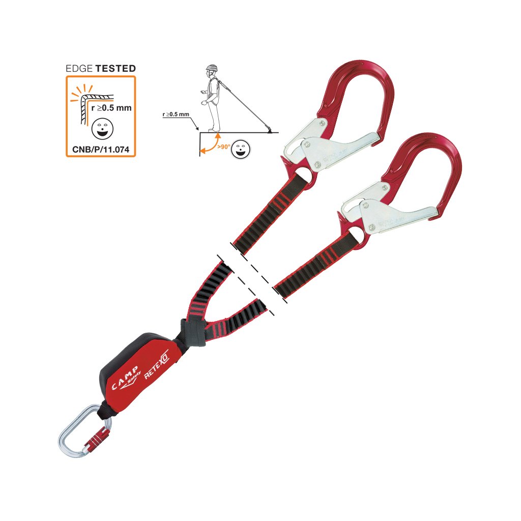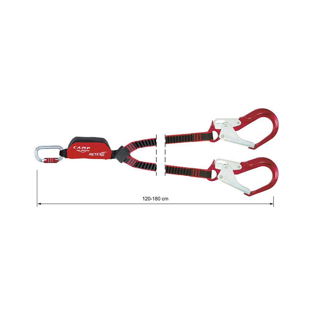 Retexo Gyro Rewind is a set of fall absorbers and locking hooks made of high-strength aluminum alloy CAMP Hook Plus with a width of 62 mm. Elastic robust lanyards have a great extension ratio of 1:2, 3. Certified for horizontal use with fall over an edge with radius r >= 0.5 mm.