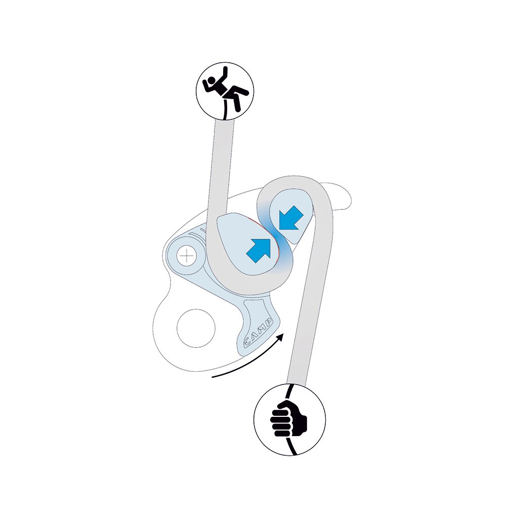 CAMP MATIK is a semi-automatic safety device with an anti-panic system and a number of other new features. In the event of a climber falling, it is capable of gripping the rope itself and stopping the fall. It is intended for simple dynamic ropes with a diameter of 8.6 - 10.2 mm. Ideal for sport climbing on rocks or walls.
