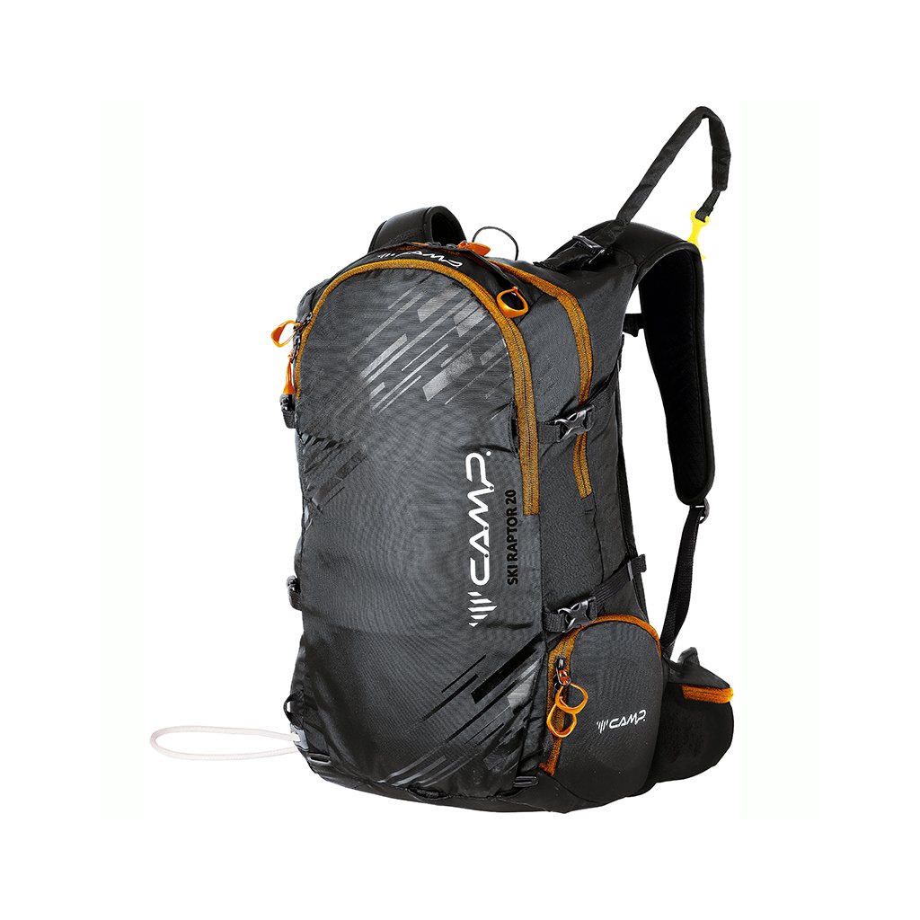 Ski Raptor 20 is ideal for lighter, fast ski alpine freeriding tours. Design and functional elements are based on professional CAMP racing alpine backpacks. Compared to the racing versions, the Ski Raptor offers padded back, shoulder and waist straps and is made of very durable 420D Ripstop nylon fabric. The innovative X-Press system is used for simple and quick removal/putting on of skis, without the need to remove the backpack. The X-Press system can be adjusted to two positions for easier fastening of skis even with a full / empty backpack. Another advantage of the Ski Raptor backpack is access to the main compartment through the back, a zippered compartment for cats with side entry, a front pocket with quick access for a shovel and a probe, and accessories for attaching an ice ax, poles, helmet, or skis to the side of the backpack.