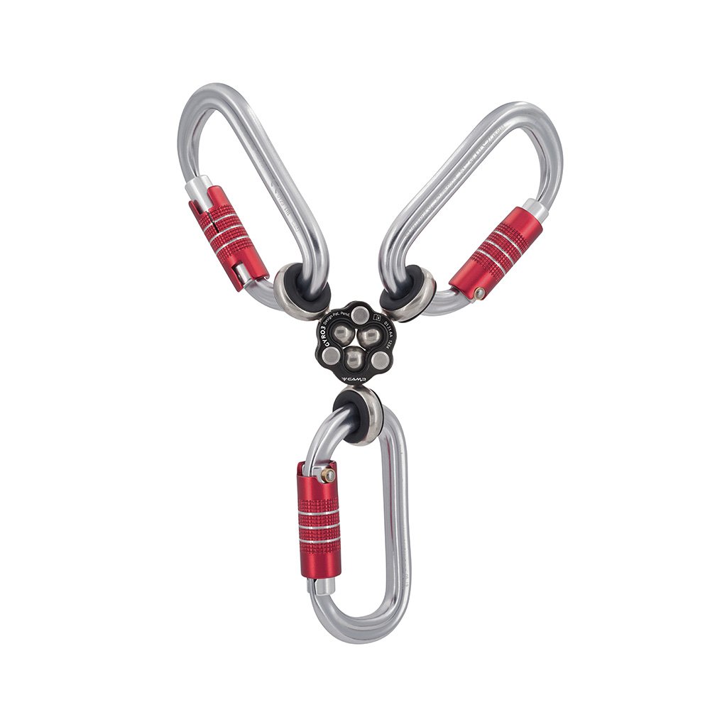 Compact universal swivel, which is unique with its three pivot points, which allow countless ways to connect different components . The CAMP GYRO swivel can be used by the user, for example, for multiple anchoring, multiple connections to a harness or when creating complex rescue procedures. The innovative design prevents the accumulation of dirt and facilitates inspection. The main structure is made of carbon steel with a double anti-corrosion coating, the swivel balls and fixing points are made of stainless steel. The product includes three removable silicone anti-rotation inserts.