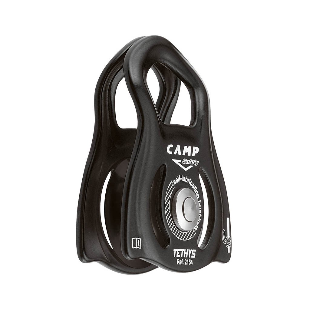 Compact single pulley with self-lubricating sliding bearing, suitable for hoists for ropes up to 13 mm. The CAMP Tethys pulley with swivel sides has a top anchor hole sized for two carabiners. Prusik auxiliary loops can be installed on both sides of the pulley (we recommend Prusik from the Aramide loop), which will be especially appreciated by the emergency services. The CAMP Tethys pulley is suitable for both rescue scenarios and work use.