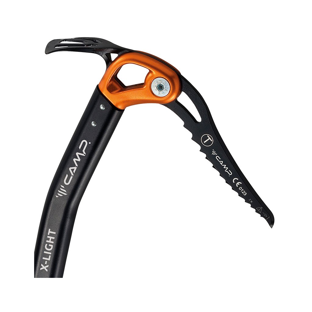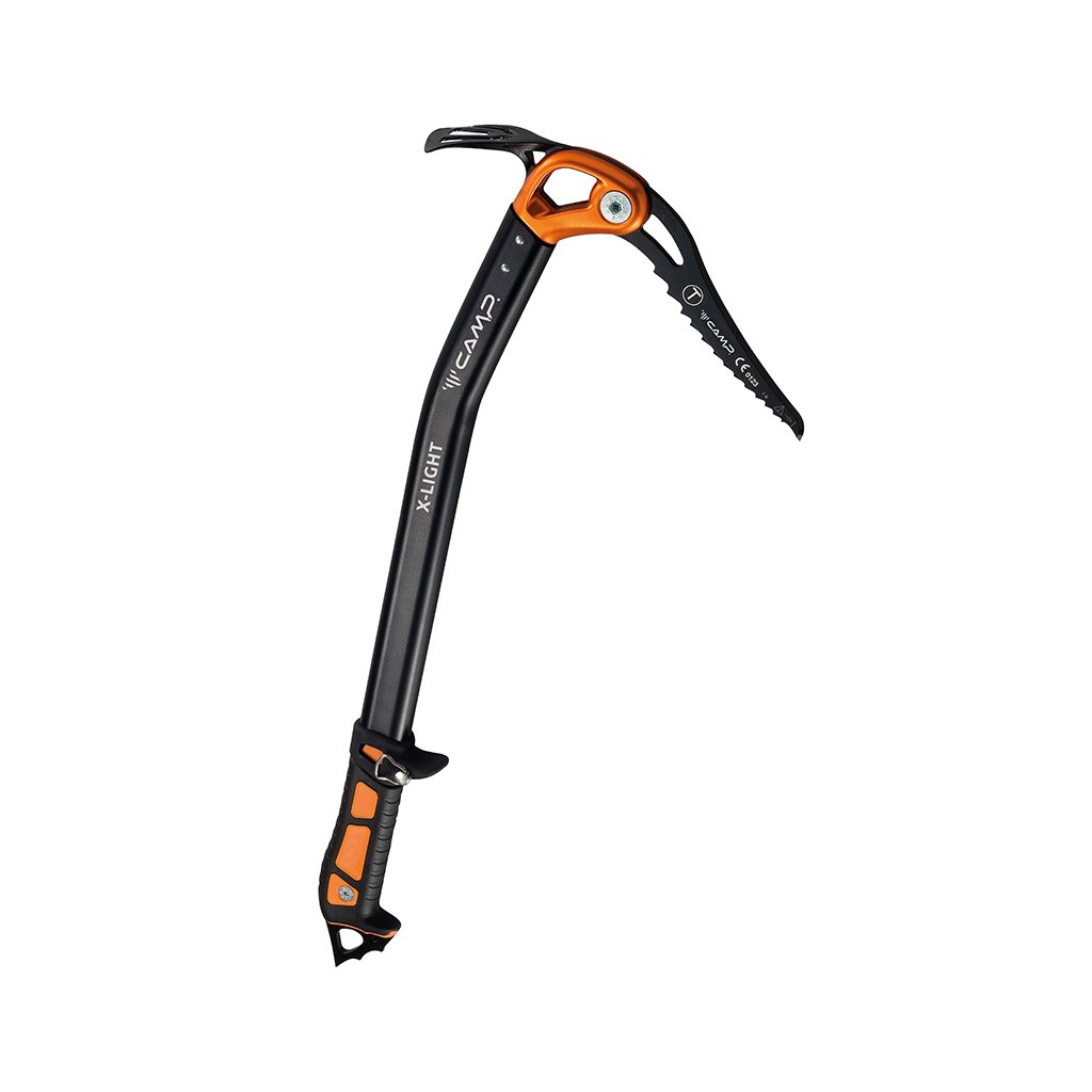 For all wanderers in the wind of Alpine, Patagonian and Himalayan walls, there is the universal and variable X-Light ice ax from Camp. The X-Light is a very light, well-balanced and durable ice ax for technical mountaineering. You are standing at the end of the road in an icy gully with spikes stuck in the ice, and you are thinking about climbing the final snow-ice climb. You advance and to overcome the edge, you use ice axes stuck into the snow up to your head, thereby ensuring a certain support and rolling onto the snow plateau. Nearby in the firn, you can use the ice ax blade to build a station with an anchoring and securing point for picking up a partner. After that, you simultaneously climb to the summit cross and enjoy a well-deserved rest. The X-Light ice ax differs from climbing ice axes in the angle of the ax, which in this version is better for a smaller slope angle - for fast technical ascent / descent. The aluminum head allows the installation of both a shovel (included in the base) and a hammer (CAMP X-Light Hammer). The hole in the head and tip allows the use of a standard loop, and the hole in the spike is large enough to connect ice ax lanyards (X-gyro Leash). The three-piece handle provides several adjustment variations to perfectly adjust the selected terrain. The tip of the X-Light ice ax has no teeth, so gloves are not damaged when supported in the field. X-Light is the most universal ice ax for classic technical alpinism in all difficulties.