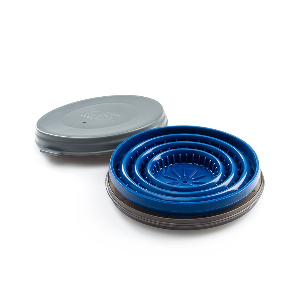 Practical collapsible silicone bowl designed for preparing drip coffee wherever you are. Preparing coffee in the GSI COLLAPSIBLE JAVA DRIP bowl is very simple. You insert a coffee filter into the bowl, into which you pour your favorite coffee. You then pour hot water over the coffee and your favorite hot coffee drips into the prepared container through the filter and the lid, which has a small opening. When folded, the bowl takes up minimal space in your luggage. The material of the folding bowl is long-lasting and ecological.