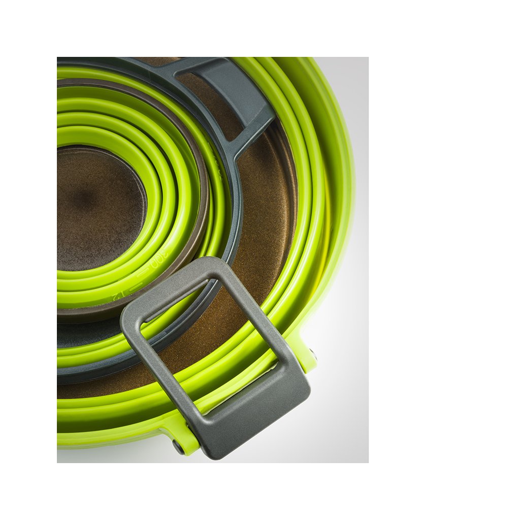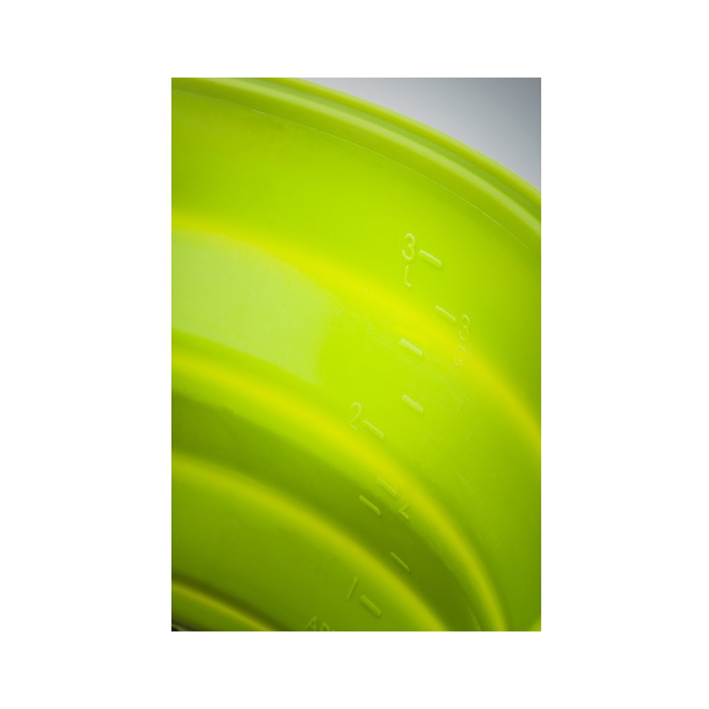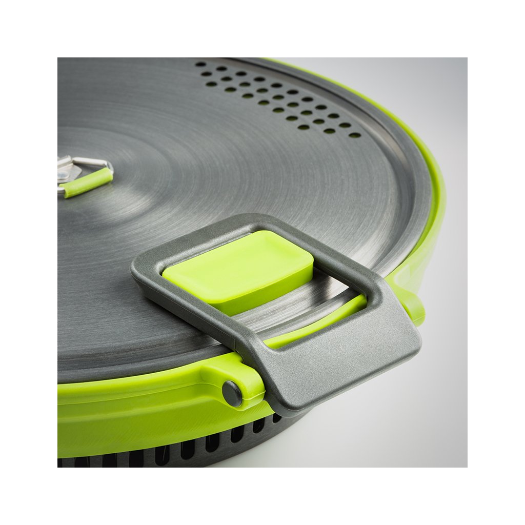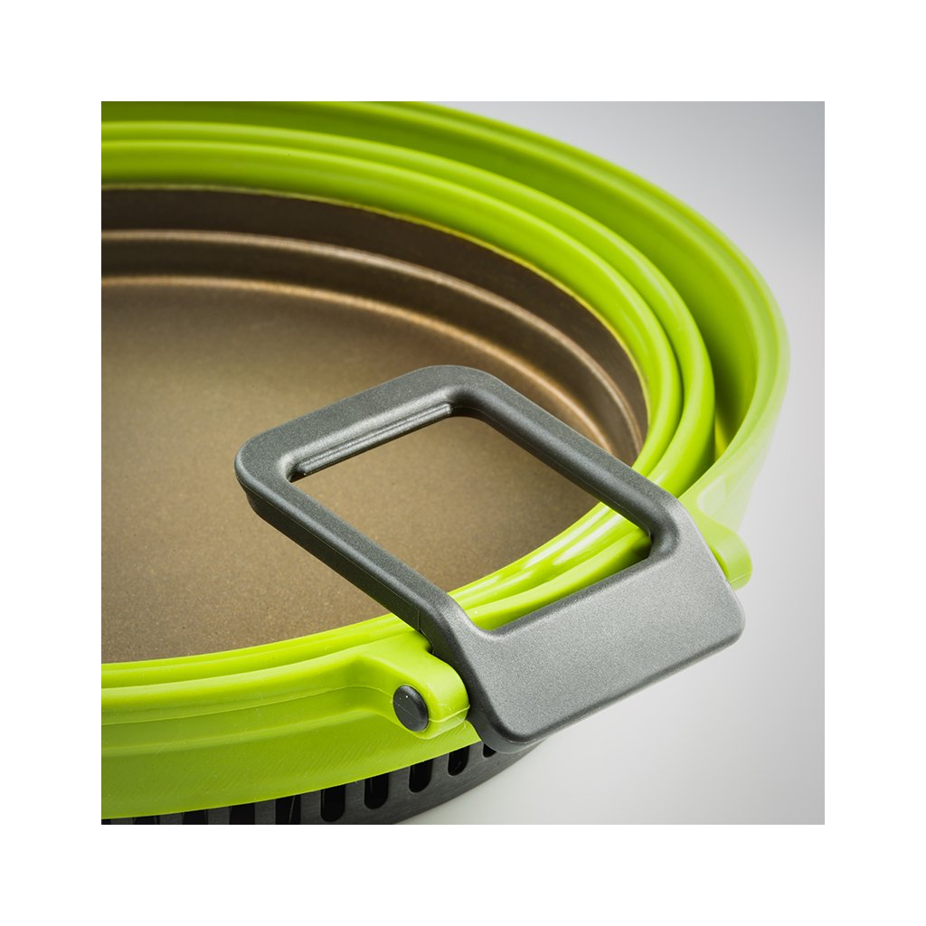 Set of Teflon 9" frying pan and efficient Escape 3l folding pot with ingenious system for perfect heat distribution. The pot bottom, pan and perforated lid are made of hard anodized aluminum, which guarantees the highest efficiency of heat distribution, chemical resistance and maintains a very light weight. The inner bottom of the GSI EscapeHS Pot and the inside of the pan are made of 3-layer anodized aluminum, hardened with Radiance® technology, a maximum non-stick, scratch-resistant surface. The folding sides of the pot and the thumb guards are made of silicone. The pot can be folded to a minimum height of 5.3cm. The pan and pot are suitable for all types of outdoor cookers. However, they are definitely not designed for cooking over an open flame.