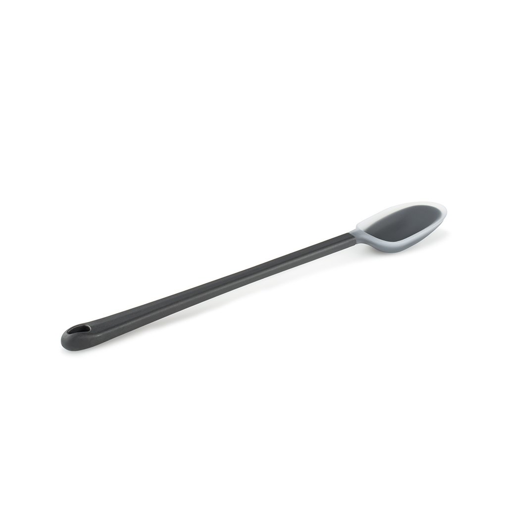 Long plastic spoon with silicone edge for perfect wiping of the plate.