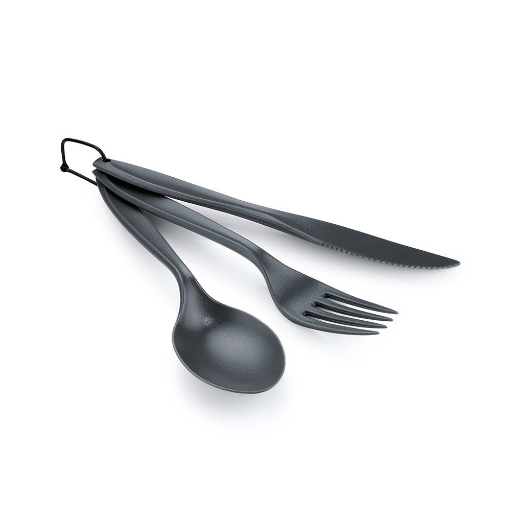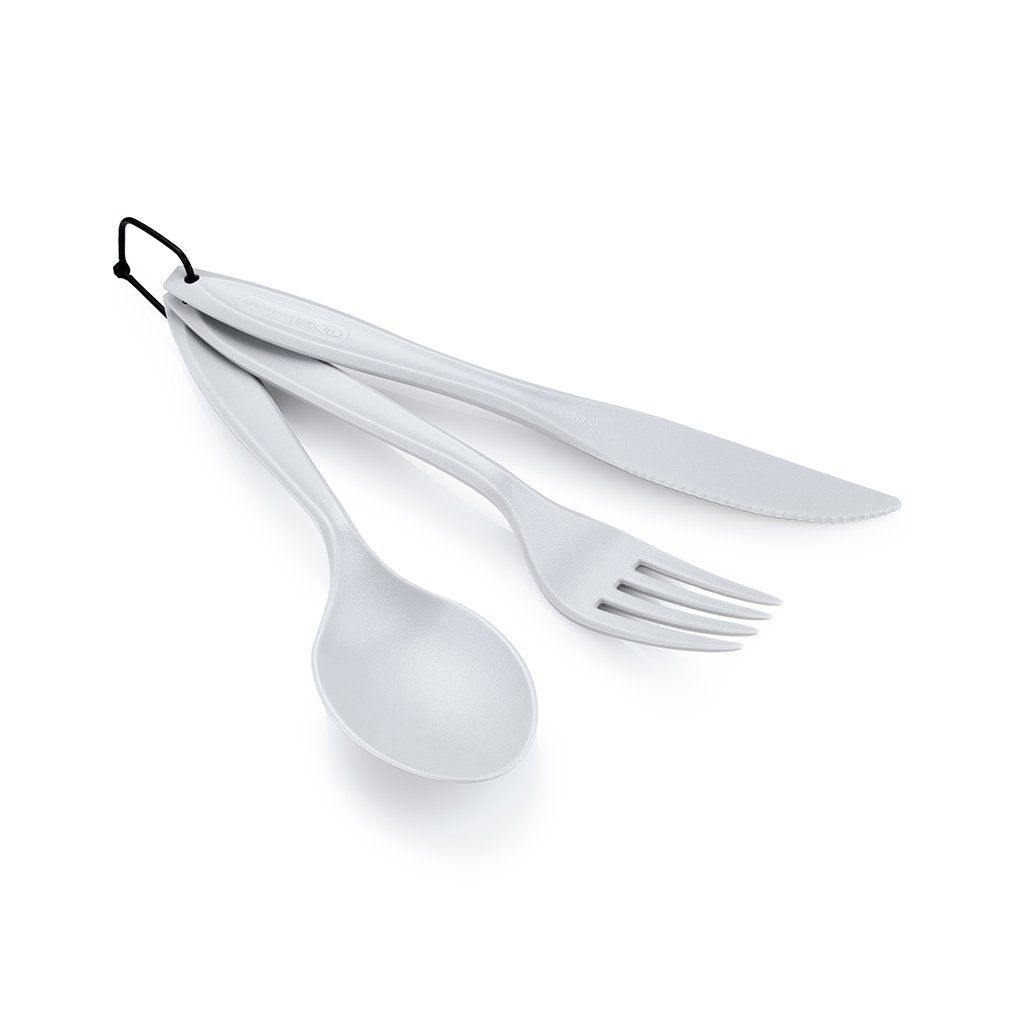 Lightweight, durable and very practical cutlery set for one person made of BPA FREE Aceal material. The cutlery size is suitable for use with gloves. With the sharp knife you can comfortably cut vegetables and meat.