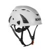 The KASK SUPERPLASMA AQ work helmet is a slightly improved model of the popular PLASMA WORK AQ helmet. Like the previous model, it is light, compact, comfortable and well ventilated. The outer material is made of a high-strength shell and the inner material consists of HD polystyrene, on which a soft polyethylene lining is fixed, which can be removed and washed. The helmet has clips for attaching the headlamp. It has 10 vents that are protected by an aluminum mesh that is now stronger so it lasts longer. The adjustable headband has also undergone a transformation, which is now more comfortable. The chinstrap has a colored buckle that determines the standard met.