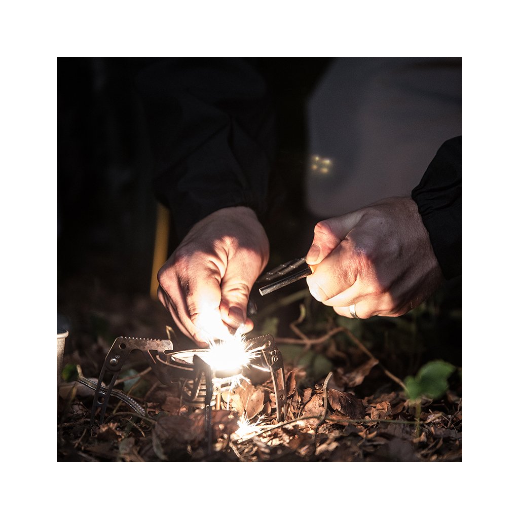 Compact, light and efficient flintlock with very simple use. The Fire Starter contains a ferrocerium rod that can create sparks at an extremely high temperature of 2890°C, allowing you to start a fire in any weather or altitude.