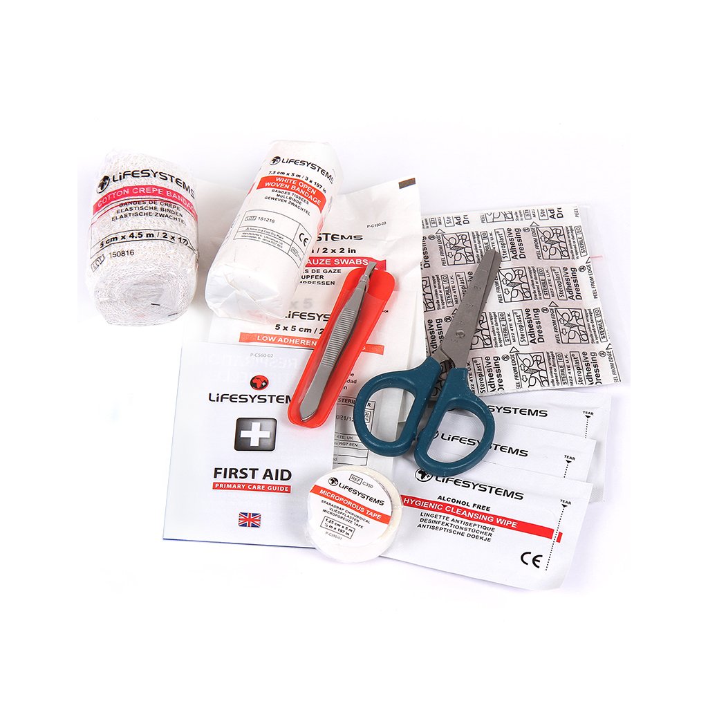 The first aid kit is suitable for hiking and trips. The Lifesystems Pocket First Aid Kit is equipped to treat all minor injuries. The package includes a loop for attaching to a belt or hanging from a backpack.