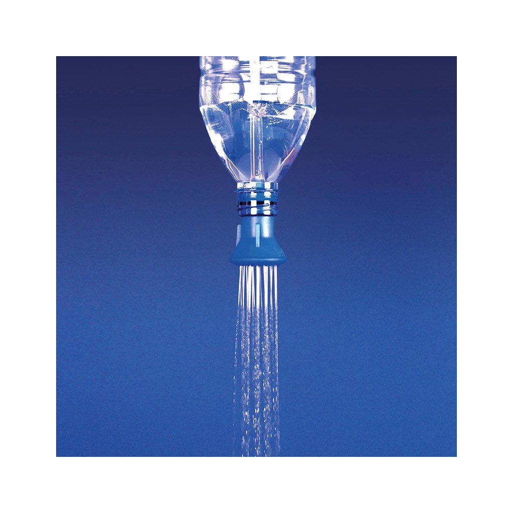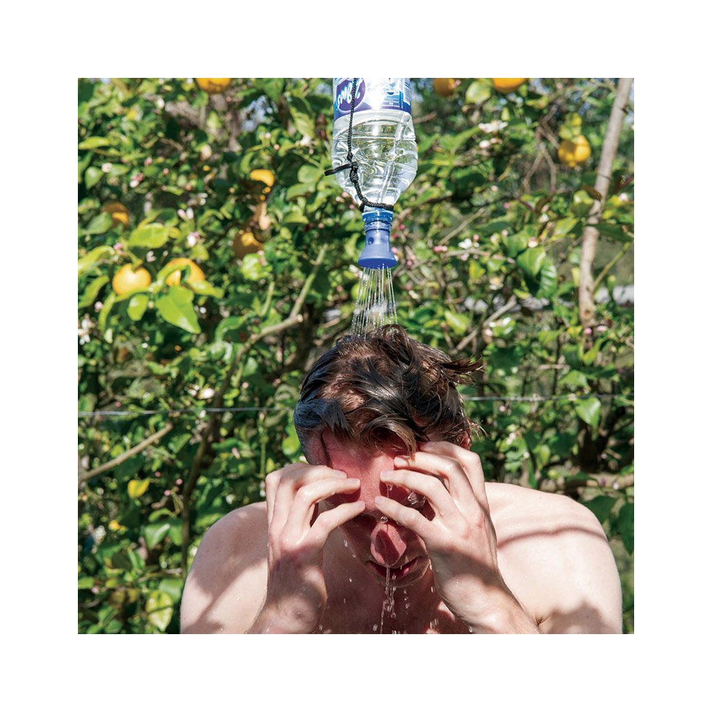A small travel shower intended for insertion into the narrow neck of a plastic bottle. The Lifeventure Travel Bottle Shower travel shower is suitable for personal hygiene on long trips, trips, camping, on the go or also, for example, for washing hands and feet on the beach. You simply turn the shower head together with the bottle downwards and water will flow in a gentle stream even without squeezing. No squeezing required. For a 2 liter bottle, it is possible to wash for approx. 2.5 minutes. The shower is supplied with a hanging string.