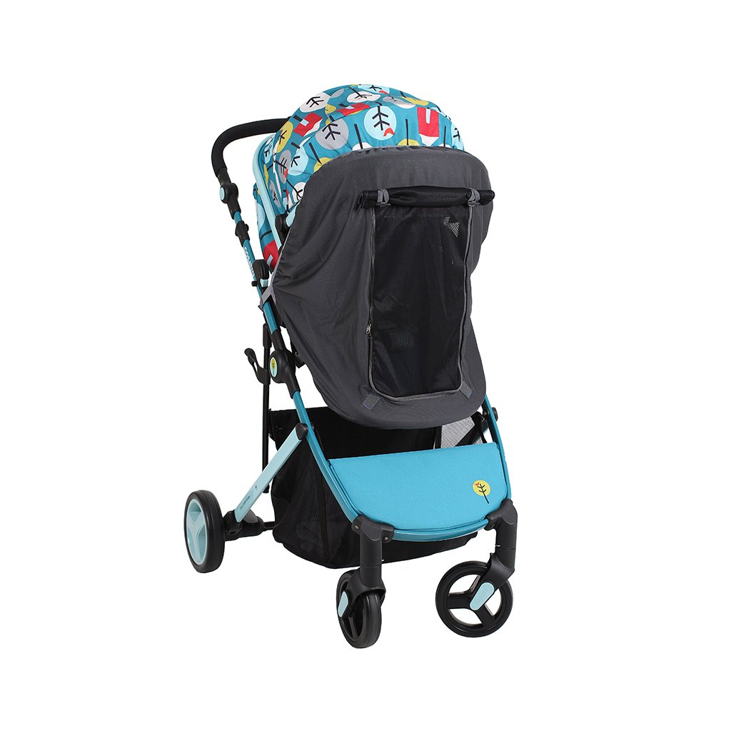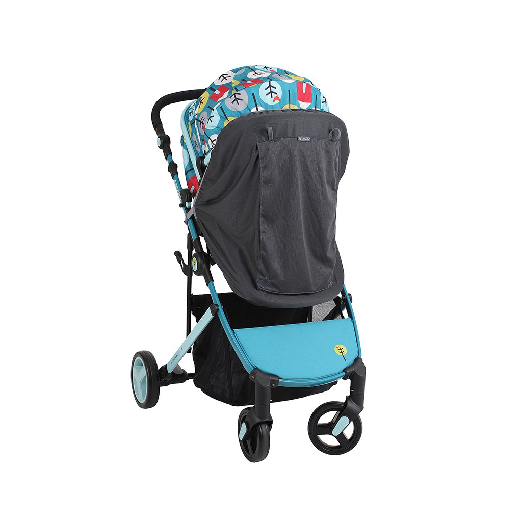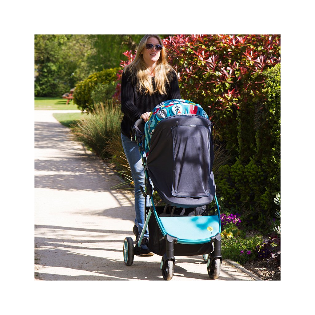 Buggy Blackout is a practical shade for a baby carriage. The shade has a universal shape and is therefore compatible with commonly available golf carts that are equipped with a front fixing handle. The shade is attached to the stroller using two side straps, which are attached to the handles in the central part of the stroller. The sunshade provides UV protection and, thanks to the double-layer mesh, protects from the wind, or after rolling up the top layer, also from intruding insects.