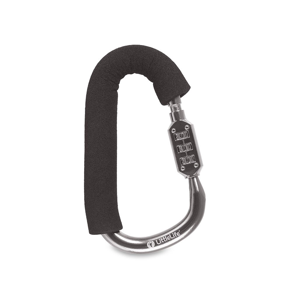 Lockable Buggy Clip is a robust metal carabiner with a three-digit number lock for locking the stroller or seat to a railing or other fixed point. Thanks to the combination lock, you don't have to worry about the stroller being stolen outside the shopping center or about losing the keys. The lock in the shape of a carabiner is simply attached to the handle of the stroller and then to a solid structure, pole or railing using a three-digit combination of the lock. The carabiner also includes a padded foam section to reduce wear on the handle. The carabiner also has a multi-purpose use. It not only serves as a lock, but can also be used as a loop for hanging shopping bags, handbags and other accessories. Thanks to the strap, which greatly eases your effort and allows you to have your hands free, you will be able to take care of your little traveler more safely during pleasant walks.