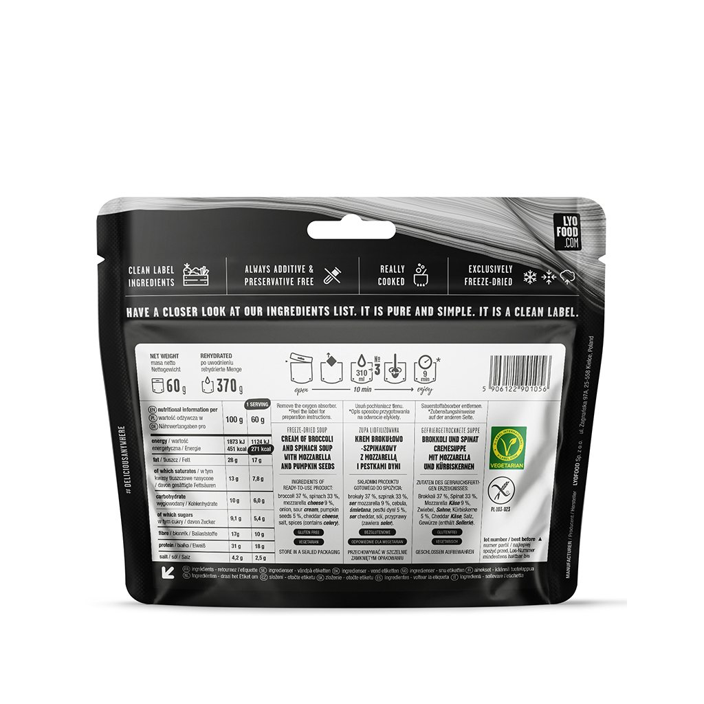 LYOFOOD Creamy broccoli soup with spinach, mozzarella and pumpkin seeds