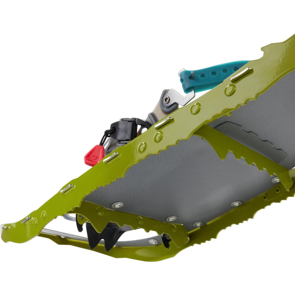 They are equipped with HyperLink bindings with two-point Pivot Crampon crampons. The front jacks allow excellent forward engagement and movement in the terrain. This binding is very easy to use even with gloves, is fully adjustable, is equipped with adjustable quick release buckles and is resistant to frost (elasticity of binding up to -29°C). They are also suitable for a wide range of footwear. The snowshoes are equipped with a Televator step - a lifting heel for efficient ascent up the hill. The gate is adjusted with a stick. The snowshoes can also be purchased with 12.7cm long additional attachments (the use of attachments depends on the weight and type of snow).
