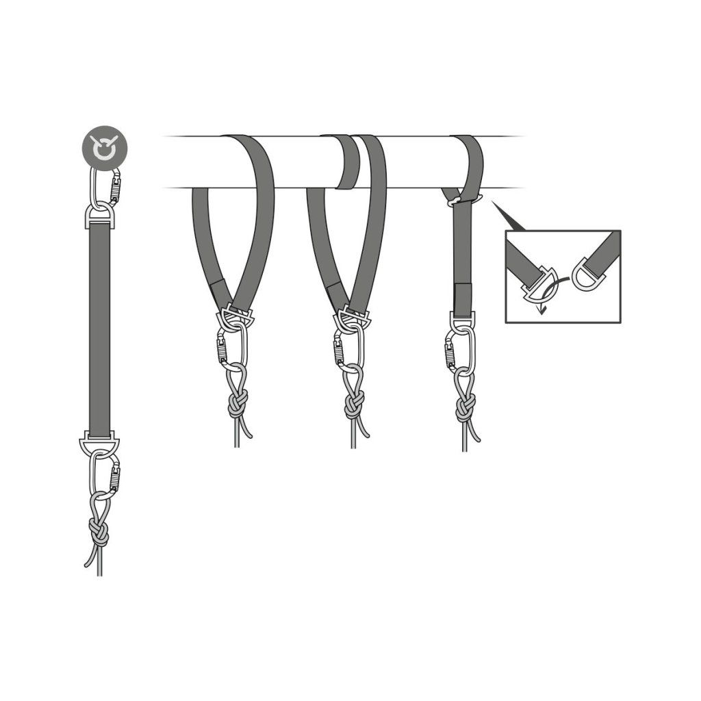 Abrasion-resistant mooring strap with two forged steel connecting eyes. The PETZL CONNEXION FIXE harness offers several configurations to establish an anchor point directly or around a suitable structure. Available in three lengths.