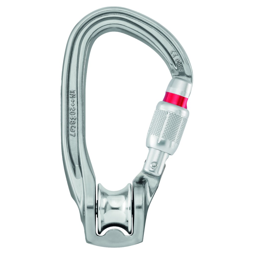 Pulley carabiner with a latch openable on the opposite side of the pulley for installation on other tools. The carabiner has a screw lock. The PETZL ROLLCLIP Z can be used to connect a mechanical prusik PETZL ZIGZAG to the harness connecting bridge PETZL SEQUOIA to increase lateral mobility . The PETZL ROLLCLIP Z carabiner can also be purchased in a version with Triact - Lock lock.
